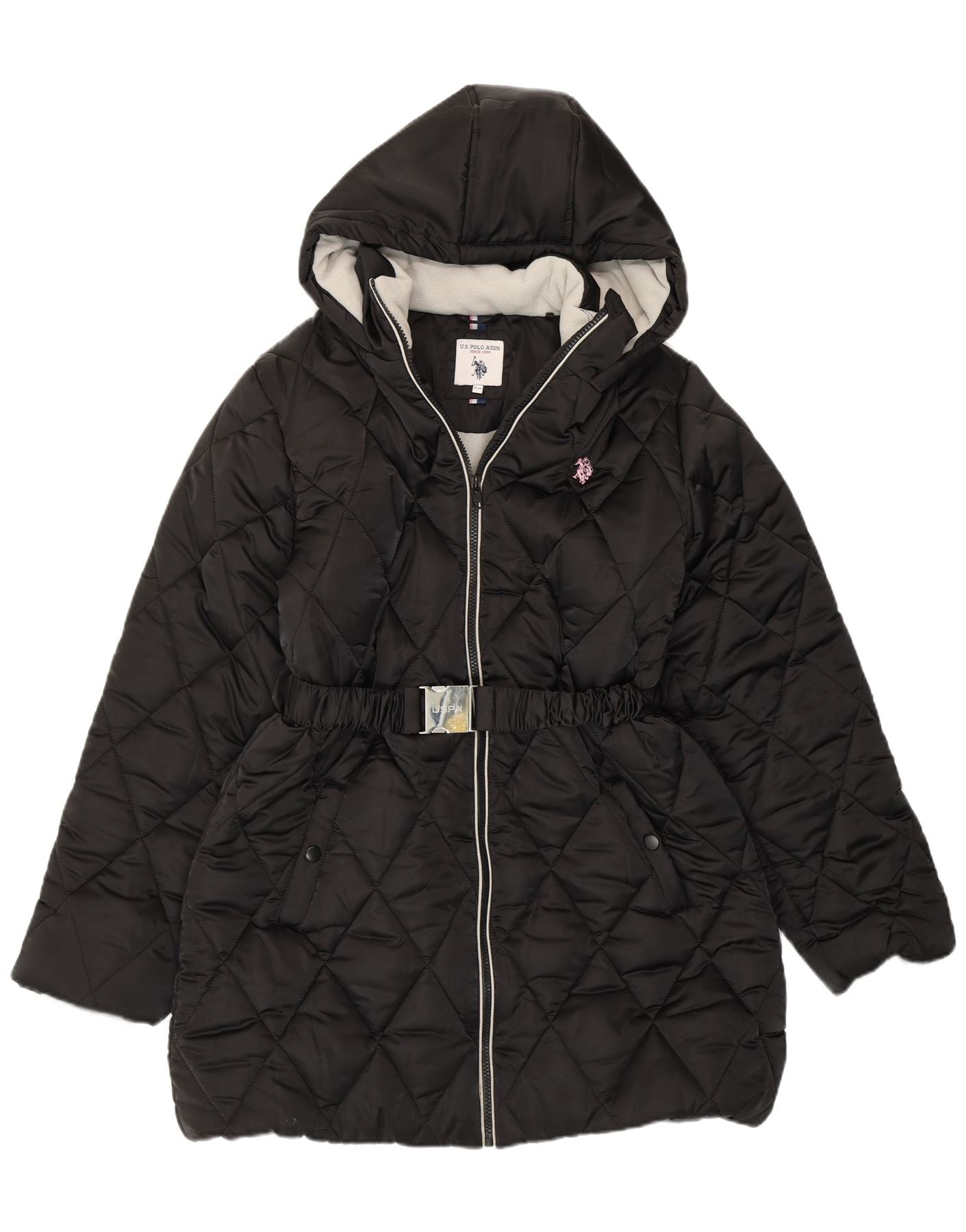U.S. Polo Assn. Wattierte Mädchenjacke mit Kapuze, 15–16 Jahre, schwarzes Polyester