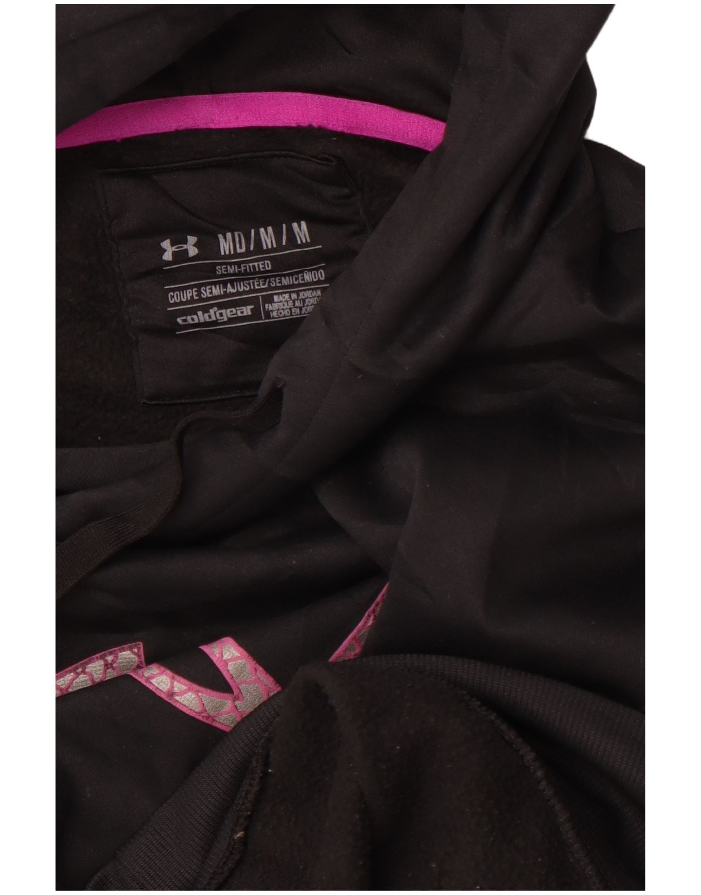 UNDER ARMOUR Damen Cold Gear Graphic Hoodie Pullover UK 14 Medium Schwarz