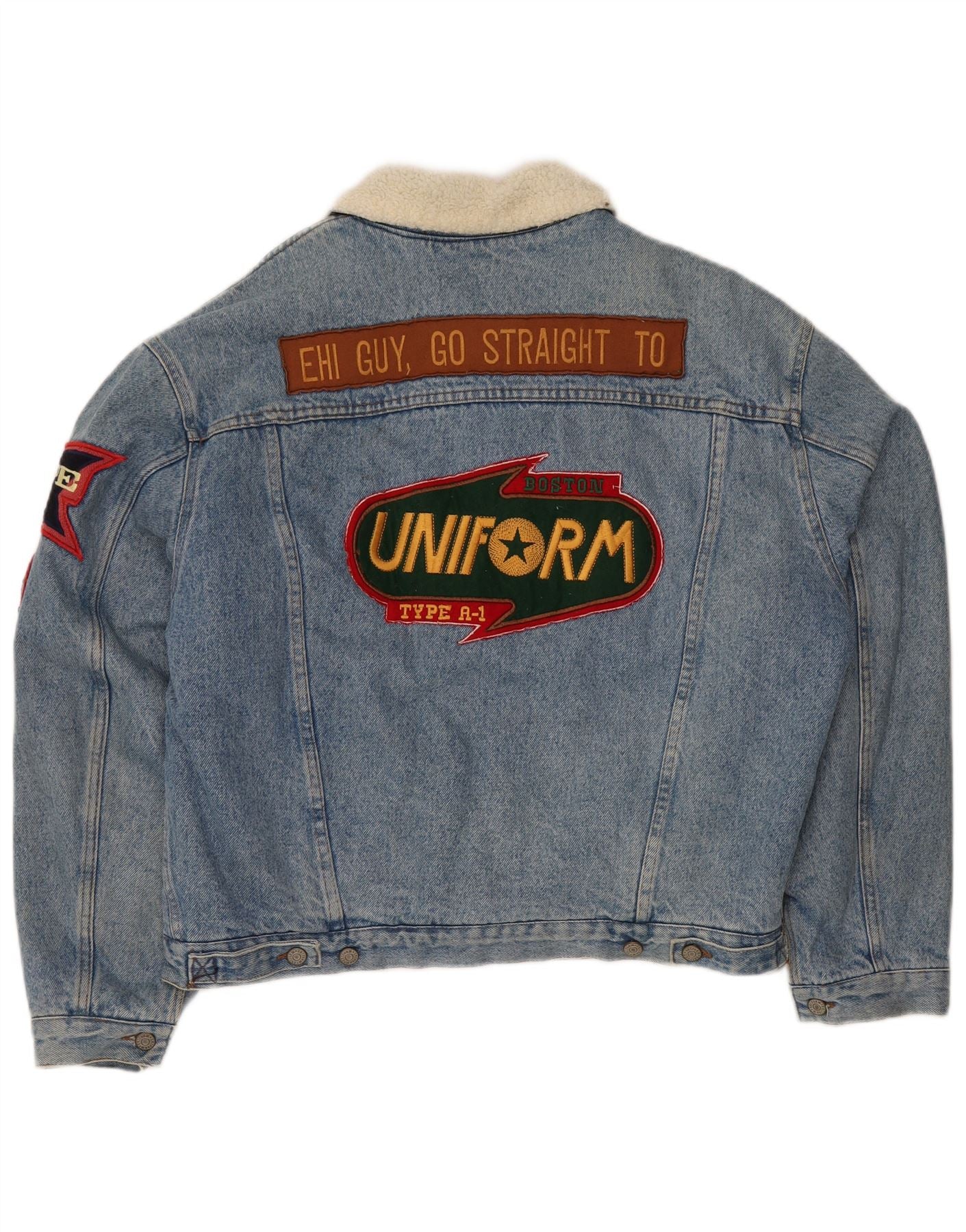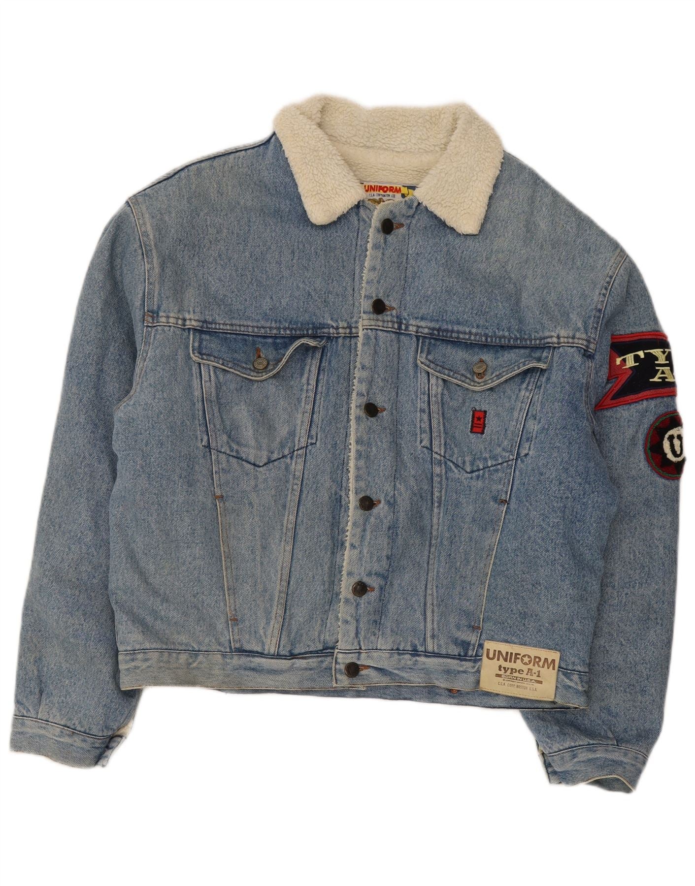 UNIFORM Herren Uniform Typ A-1 Graphic Denim Sherpa Jacke UK 40 Large Blau