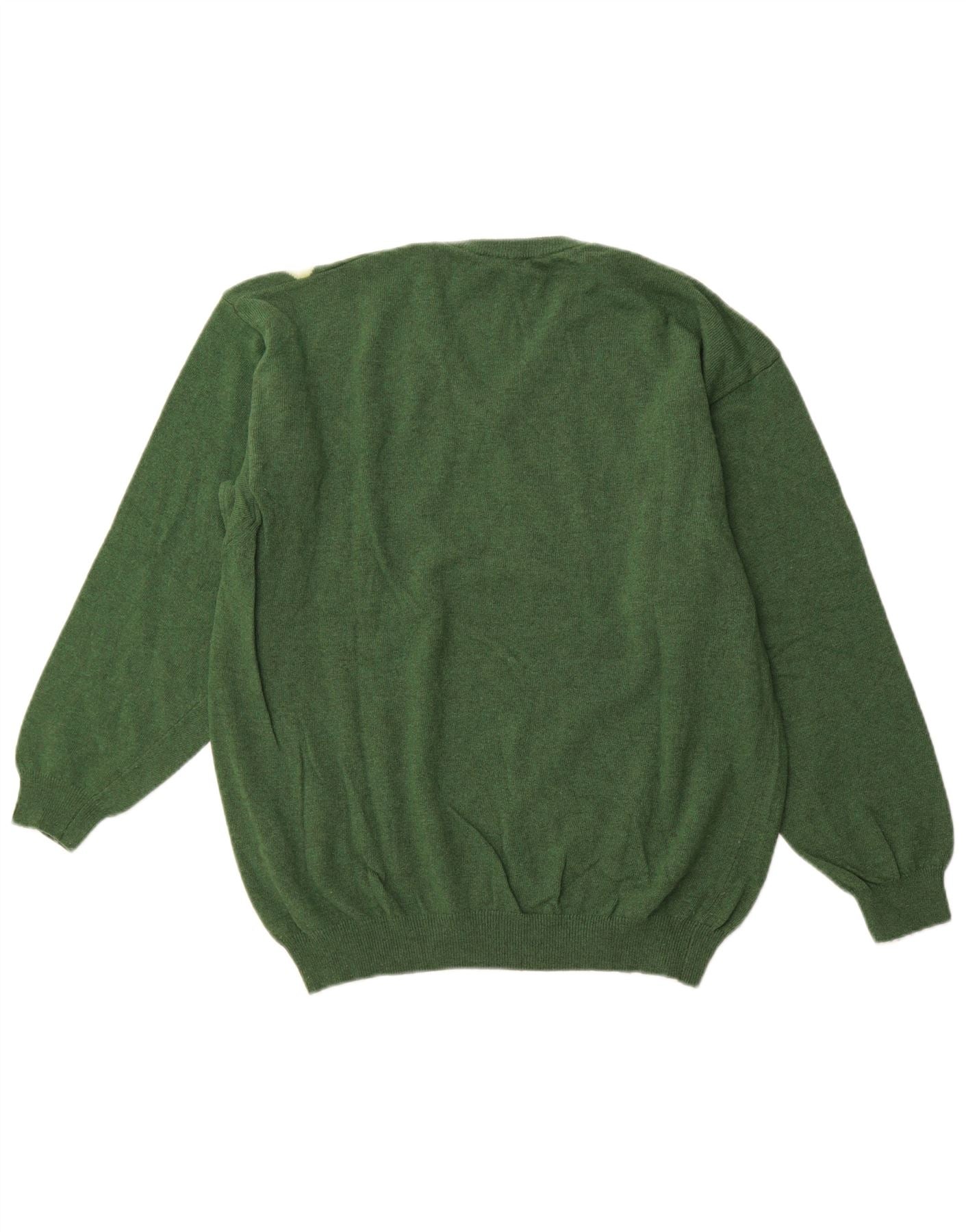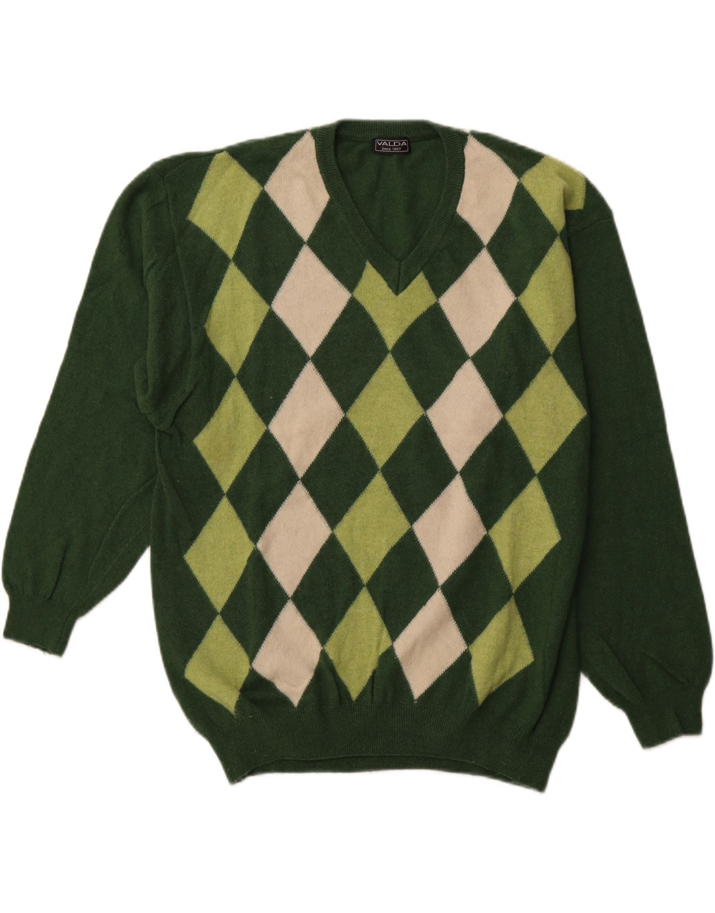 VALDA Herren-Pullover mit V-Ausschnitt, groß, grüne Argyle-/Diamantwolle
