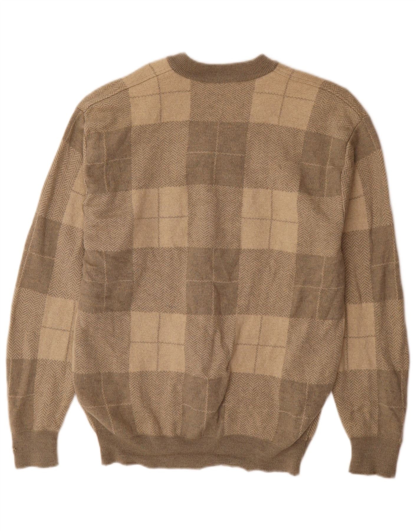 VALENTINO Herren-Pullover mit V-Ausschnitt, XL, graue Patchwork-Wolle