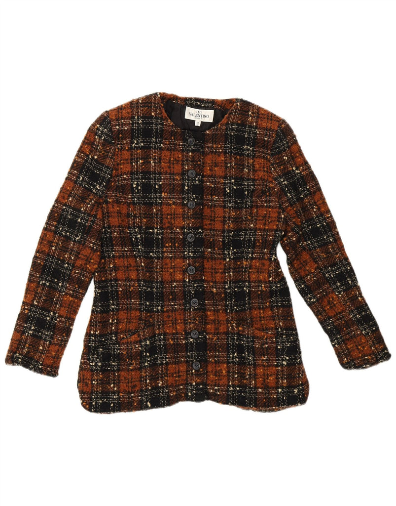 VALENTINO Womens Miss V Blazer Jacket Size 14 Medium Brown Check