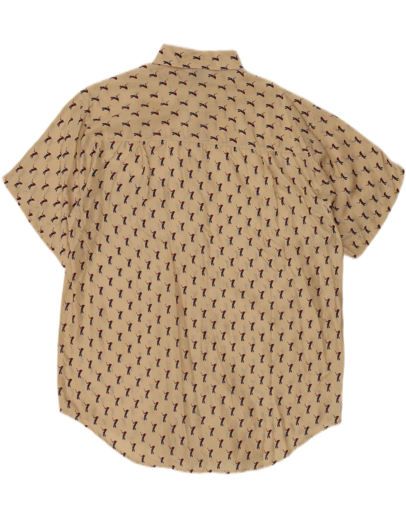 VAN ZON Herren Golf-Kurzarmhemd mit abstraktem Muster, mittelbeige Seide