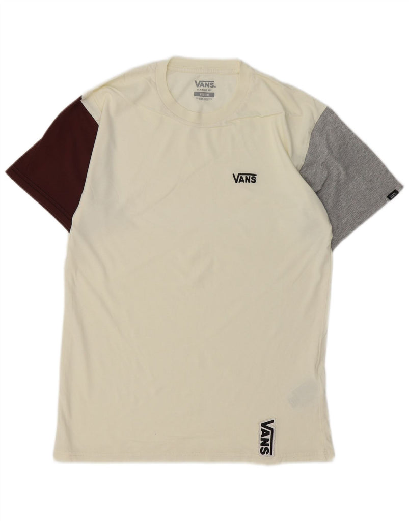 VANS Herren-T-Shirt mit klassischer Passform, mittelgroß, cremefarbene Blockfarben-Baumwolle