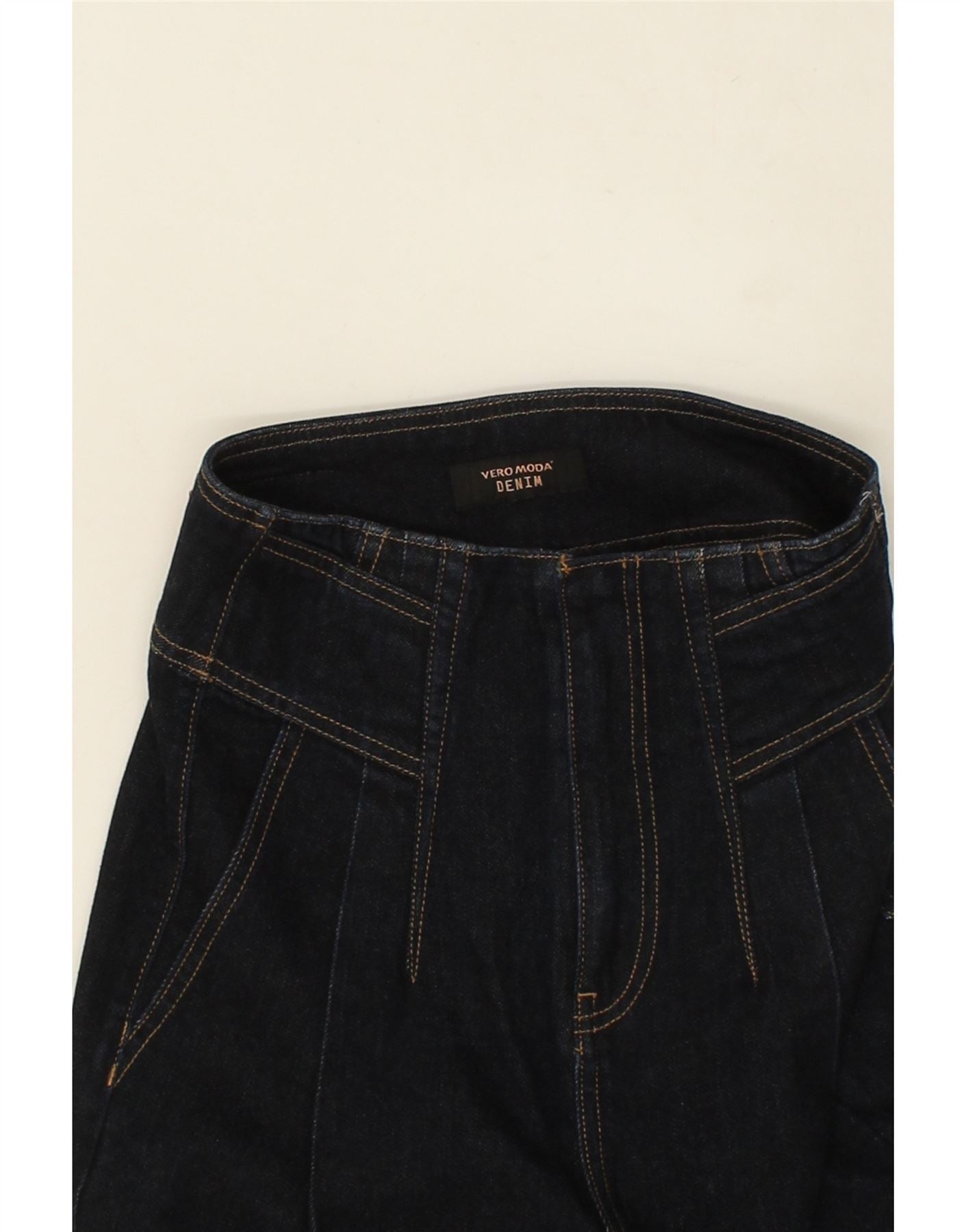 VERO MODA Womens High Waist Tapered Jeans W24 L24 Navy Blue Cotton