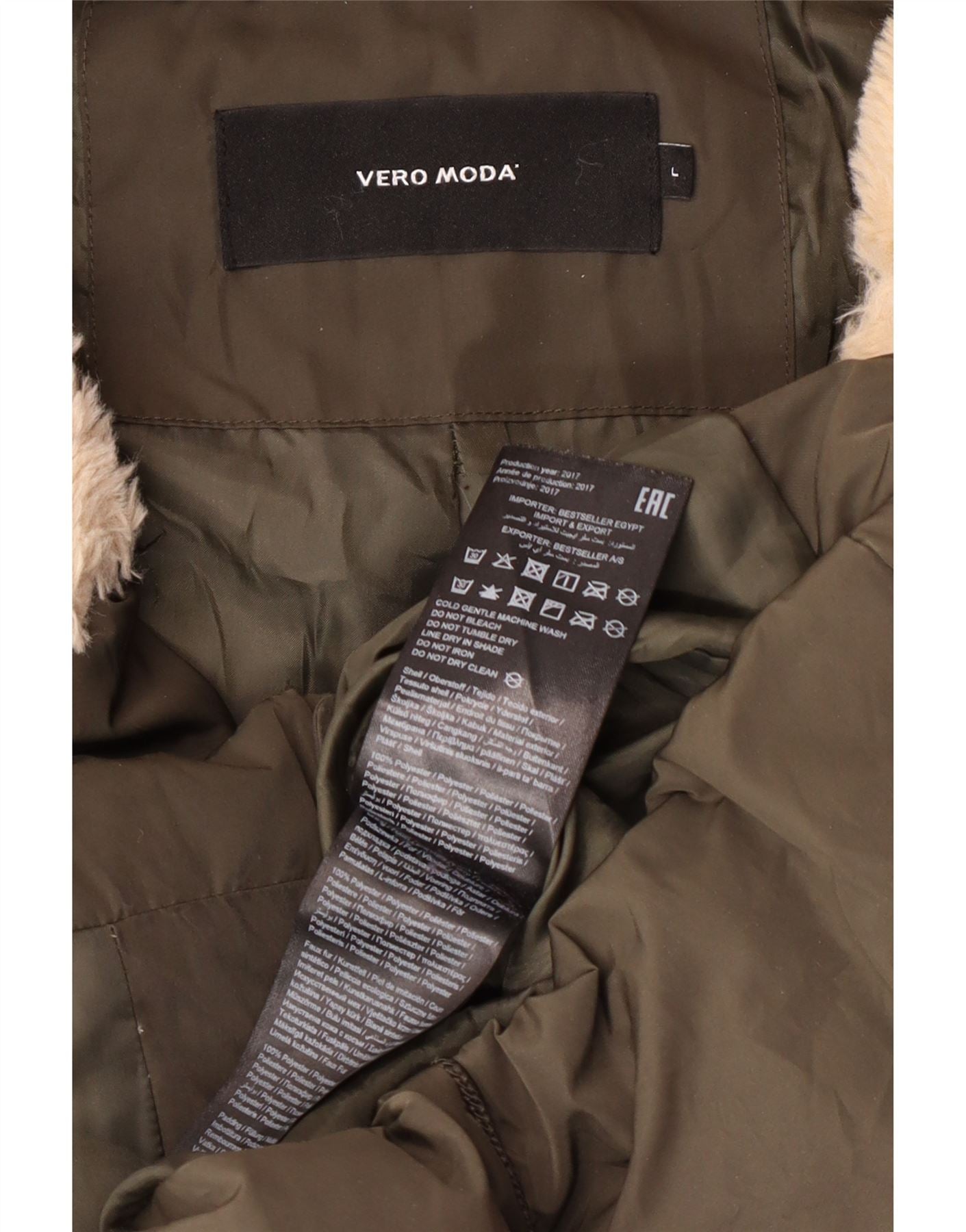 - Exact Material Composition: Outer Fabric 100% Polyester, Lining 100% Polyester, Padding 100% Polyester, Faux Fur 100% Polyester, Rib 100% Polyester