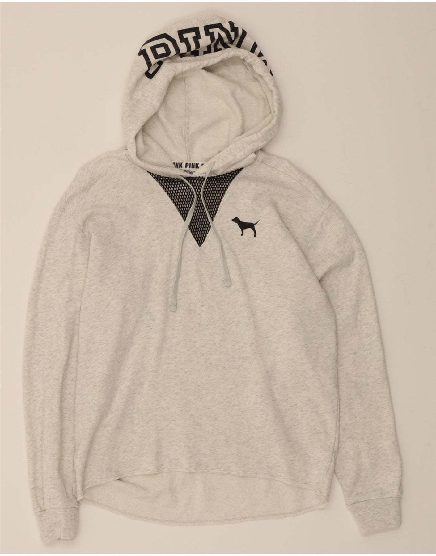 VICTORIAS SECRET Womens Pink Oversized Hoodie Jumper UK 6 XS Grey Flecked