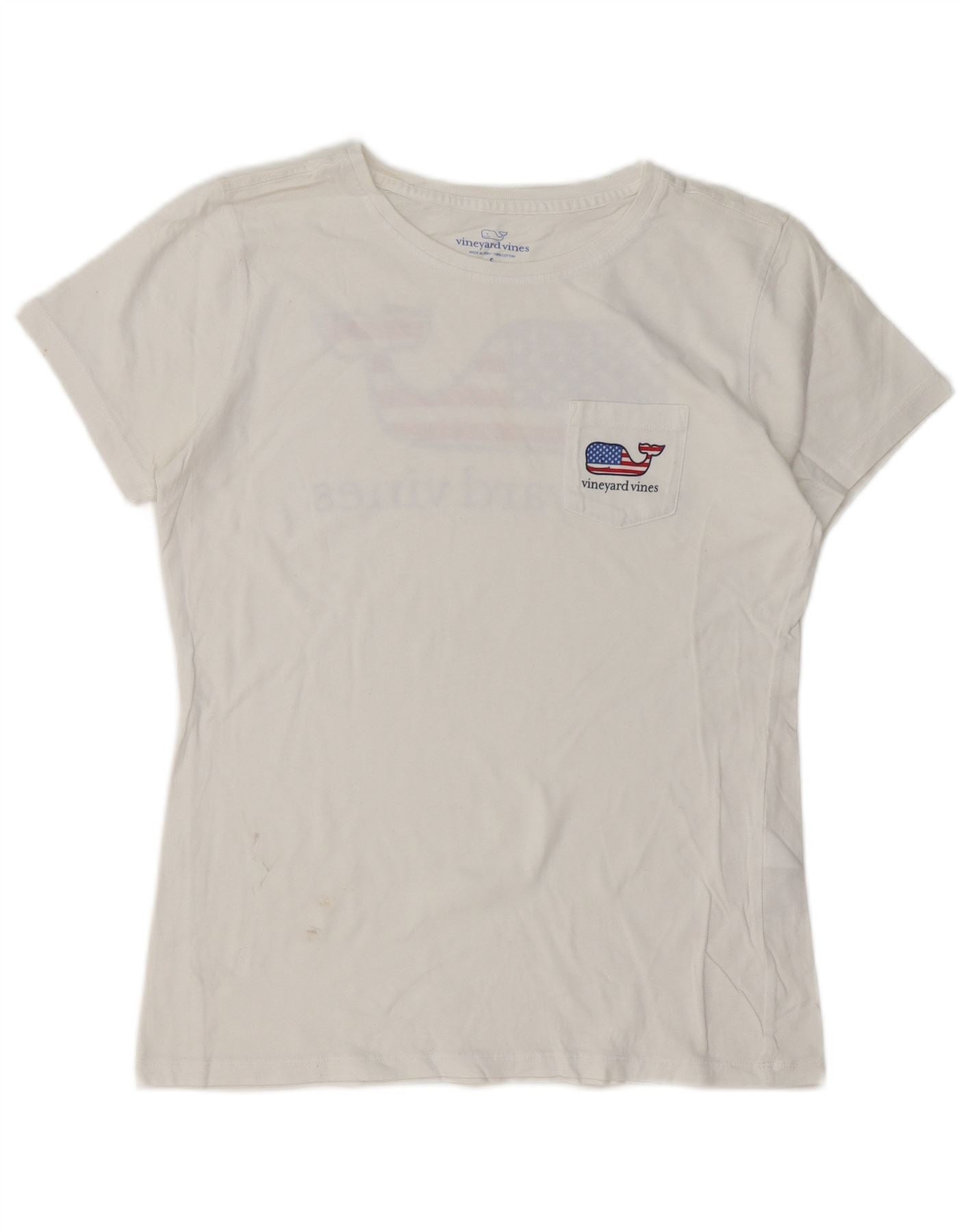 VINEYARD VINES Damen Grafik-T-Shirt Top UK 10 Small Weiße Baumwolle