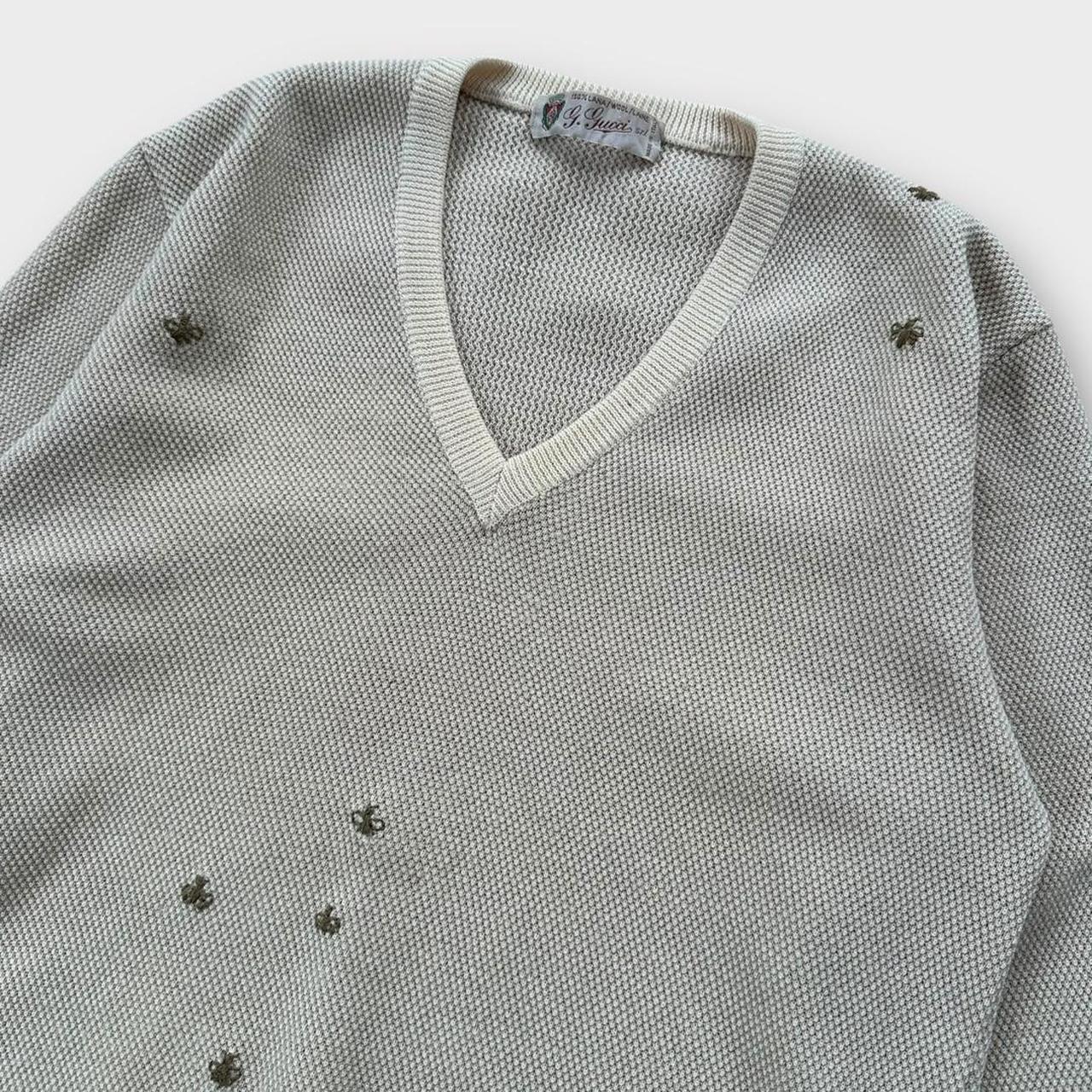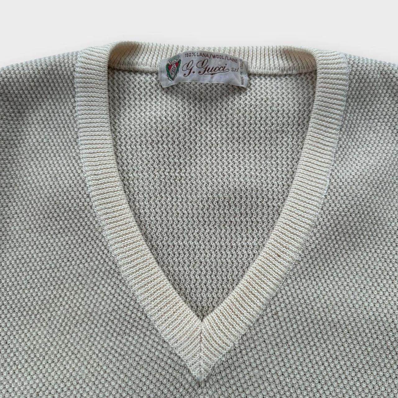 Originaler Vintage-Strickpullover von Gucci aus den 1990er Jahren in Beige mit aufgestickten Gs und Gucci-Bienen, wie auf den Bildern zu sehen ist