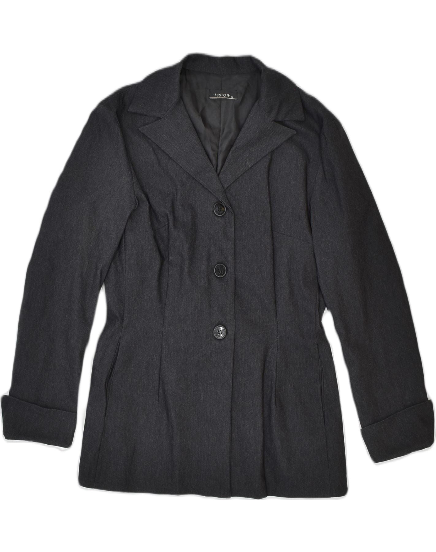 VINTAGE Damen 3-Knopf-Blazerjacke UK 12 Mittelschwarzes Polyamid