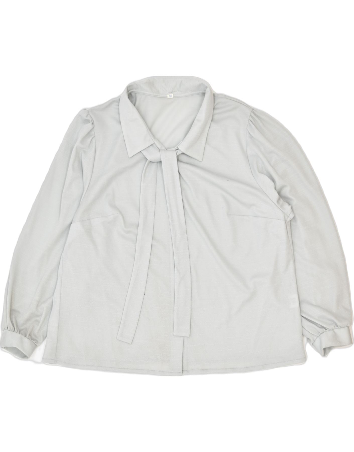 VINTAGE Damen-Hemdbluse mit Vorderkrawatte IT 50 XL Graues Polyester