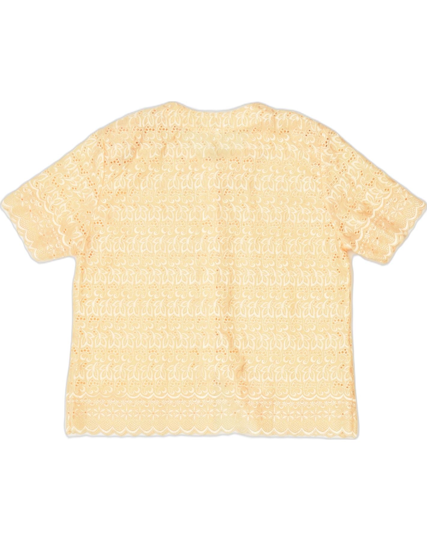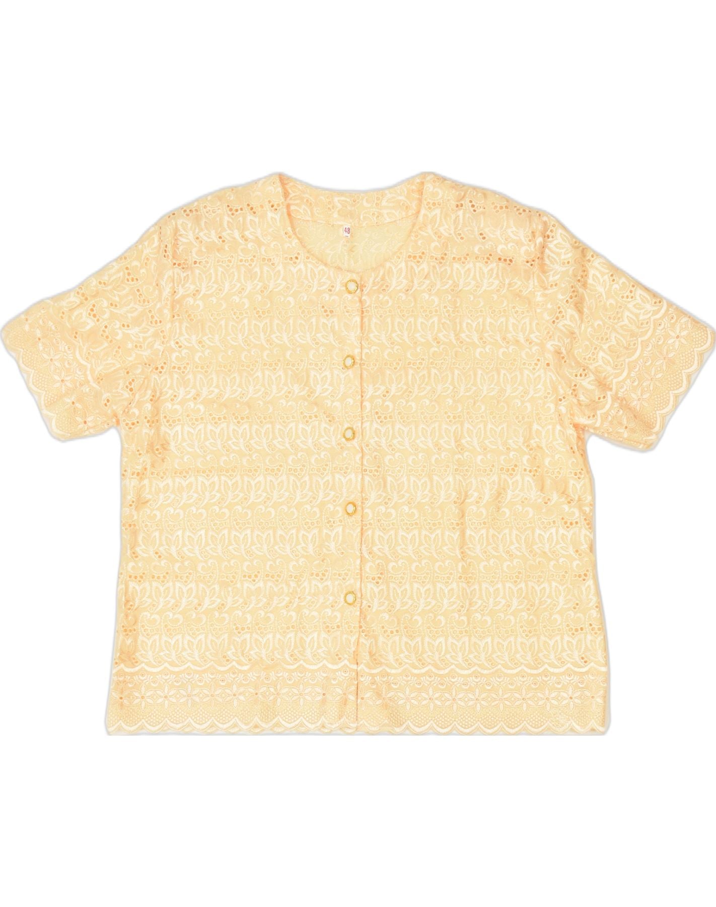 VINTAGE Damen Kurzarm-Hemdbluse IT 48 XL Gelb geblümt