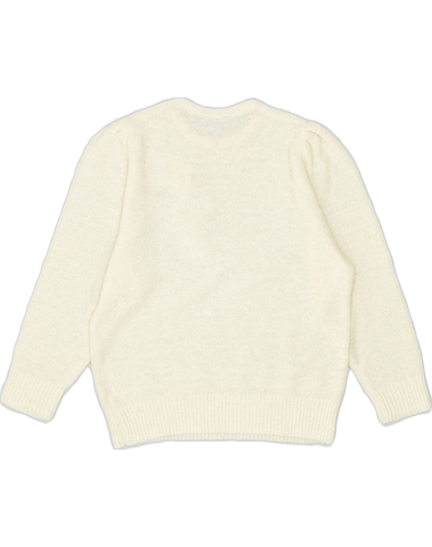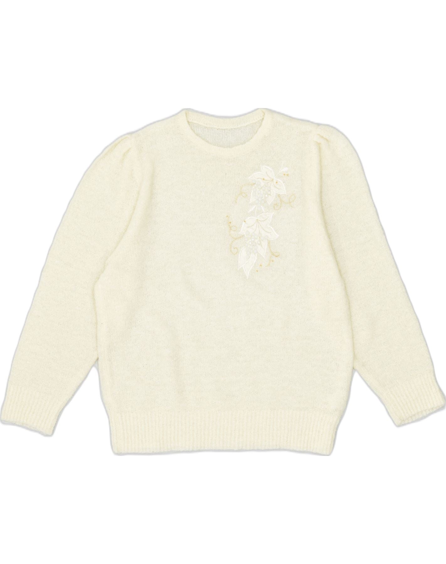 VINTAGE Damen Pullover mit Rundhalsausschnitt UK 20 2XL Off White Flower