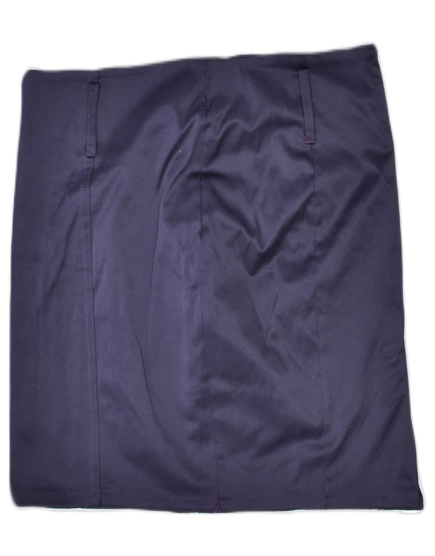 VINTAGE Gerader Damenrock UK 10 Small W30 Marineblaues Polyester