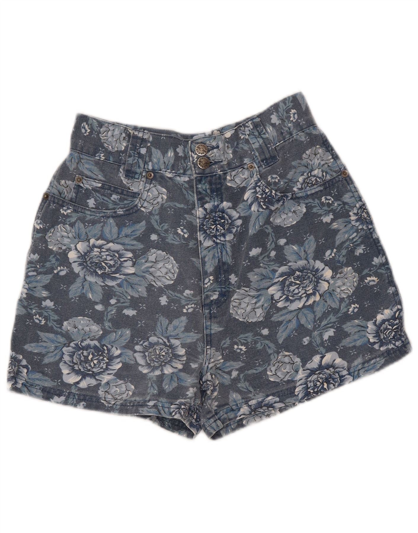 VINTAGE Jeansshorts für Mädchen mit hoher Taille, 9–10 Jahre, W26, Marineblau mit Blumenmuster