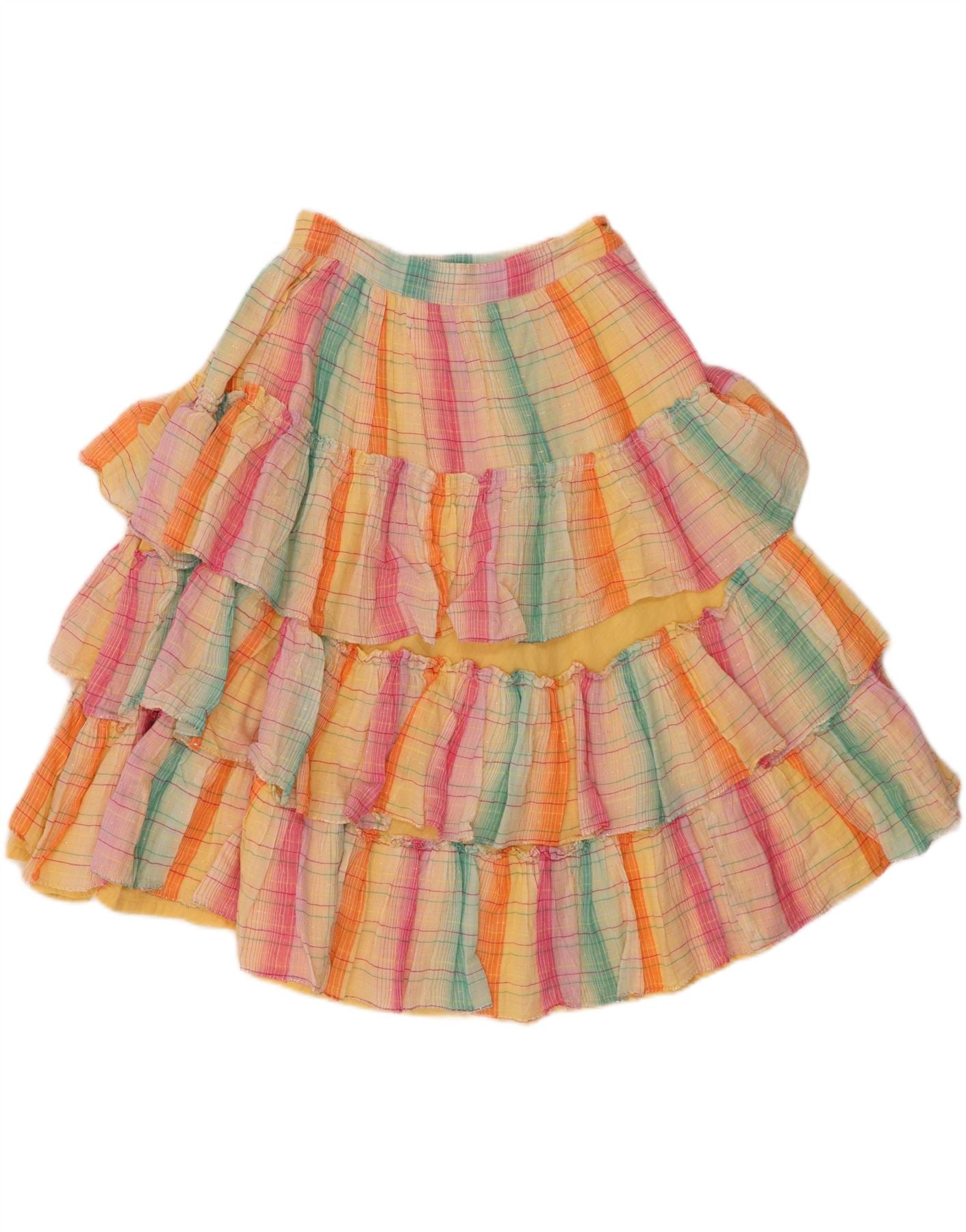 VINTAGE Girls Tiered Skirt 11-12 Years Medium W24 Multicoloured Check