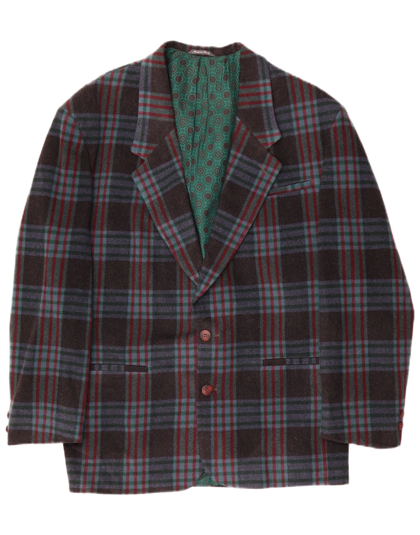 Vintage Herren 2-Knopf-Blazer-Jacke IT 48 Mittelmarineblau karierte Wolle