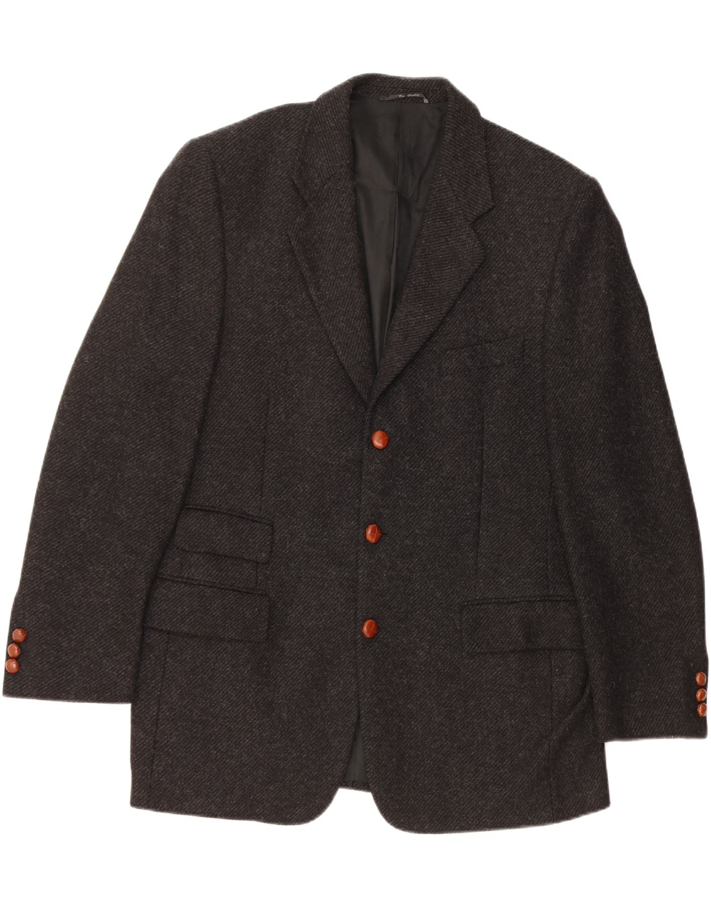 VINTAGE Herren-Blazer mit 3 Knöpfen, IT 50, große graue Wolle mit Fischgrätenmuster