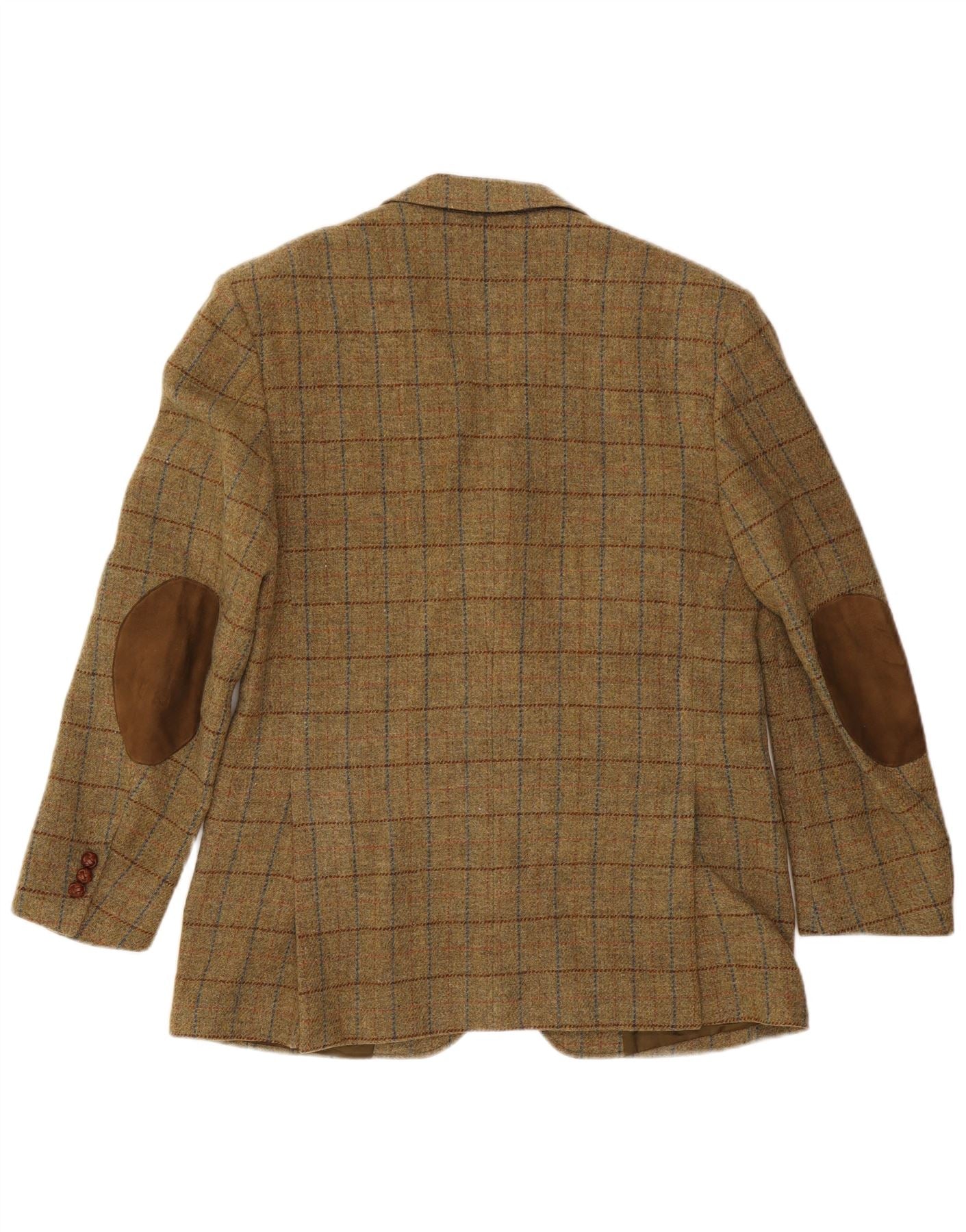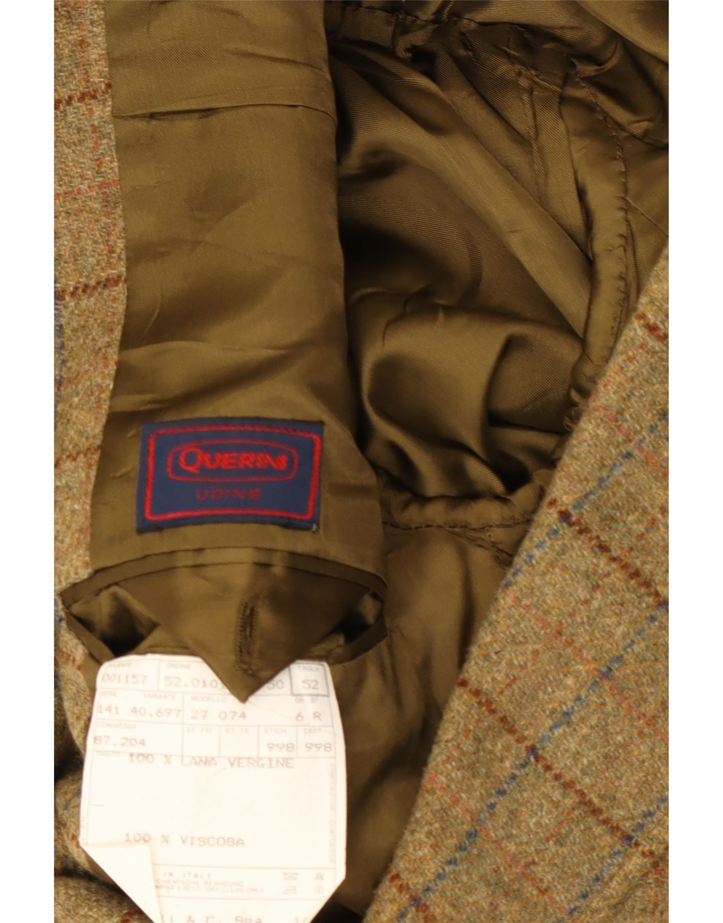 VINTAGE Herren 3-Knopf-Blazerjacke IT 52 XL Khaki karierte Wolle