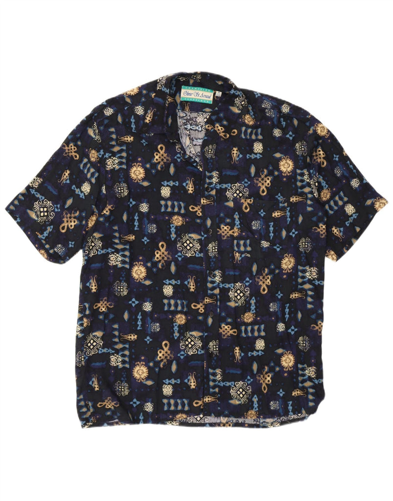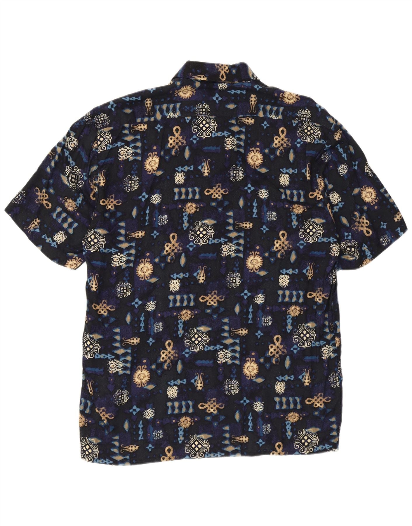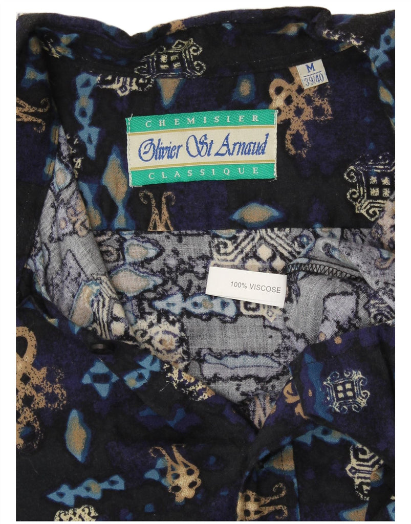 VINTAGE Herren-Hemd mit abstraktem Muster, Größe 39/40, mittleres Marineblau