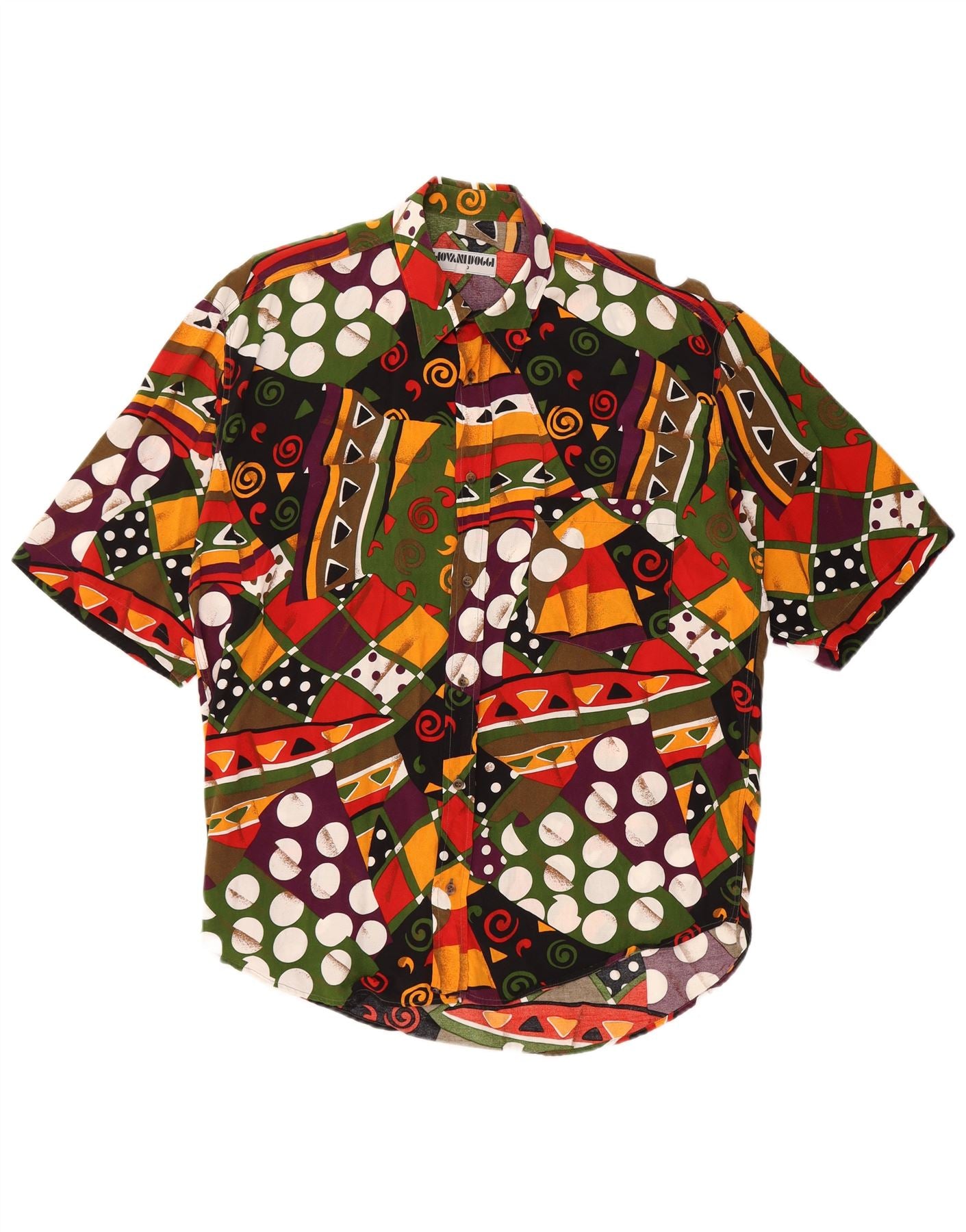 VINTAGE Herren-Kurzarmhemd mit abstraktem Muster, mittelgroß, mehrfarbig