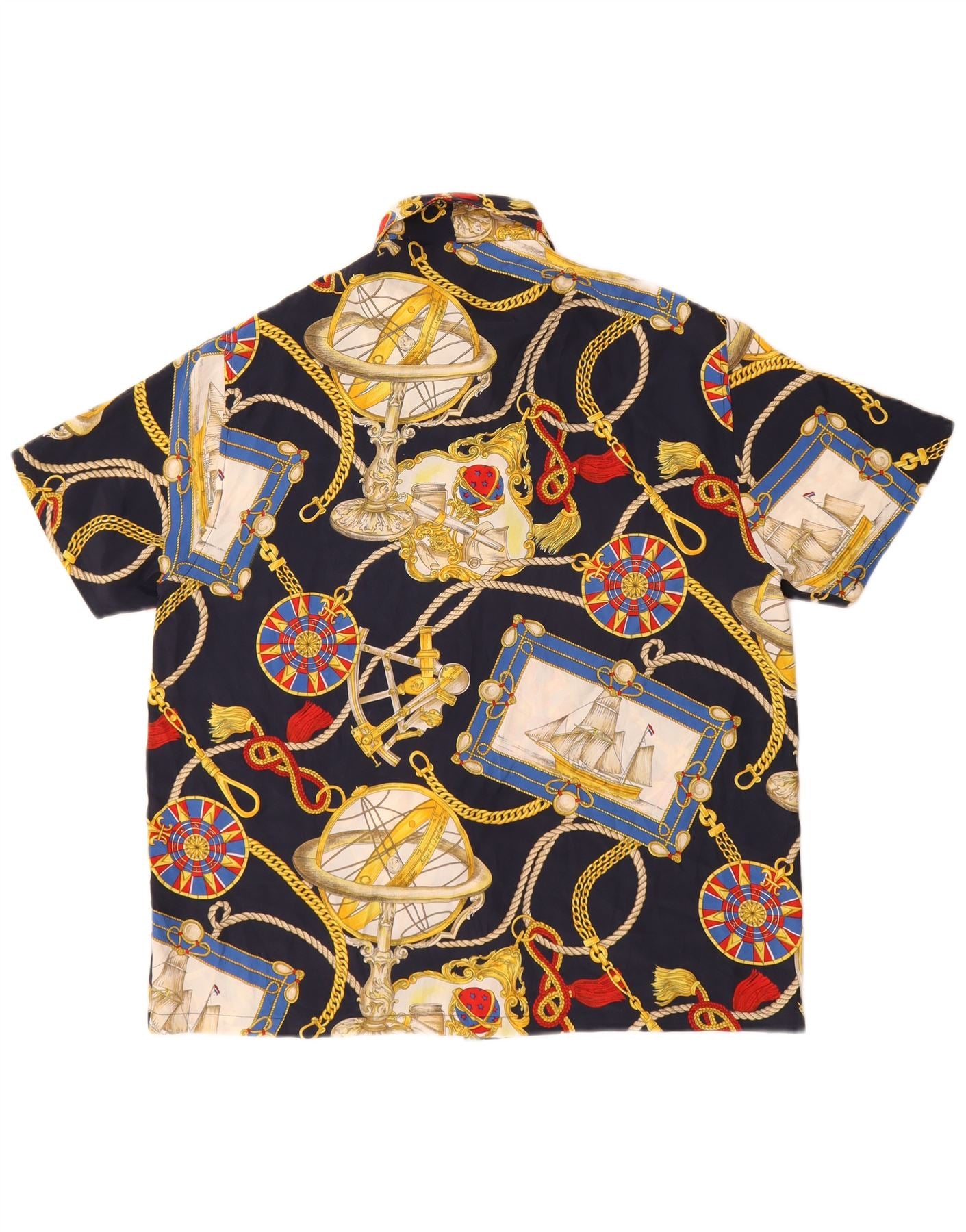 Vintage Herren-Kurzarmhemd mit abstraktem Muster, mittelgroß, Marineblau