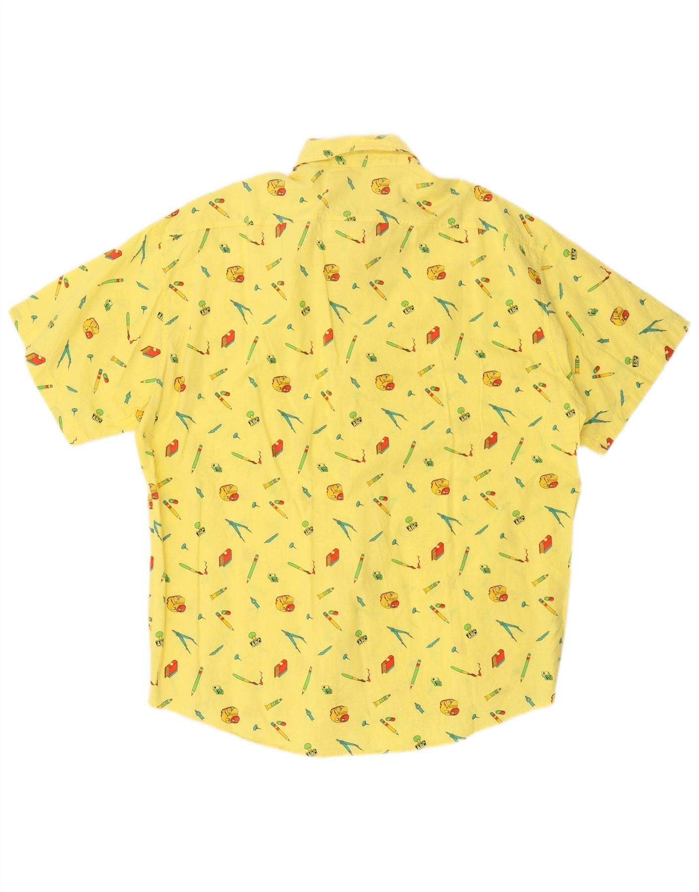 VINTAGE Herren Hemd mit abstraktem Muster, kurzärmelig, XL, gelbe Baumwolle
