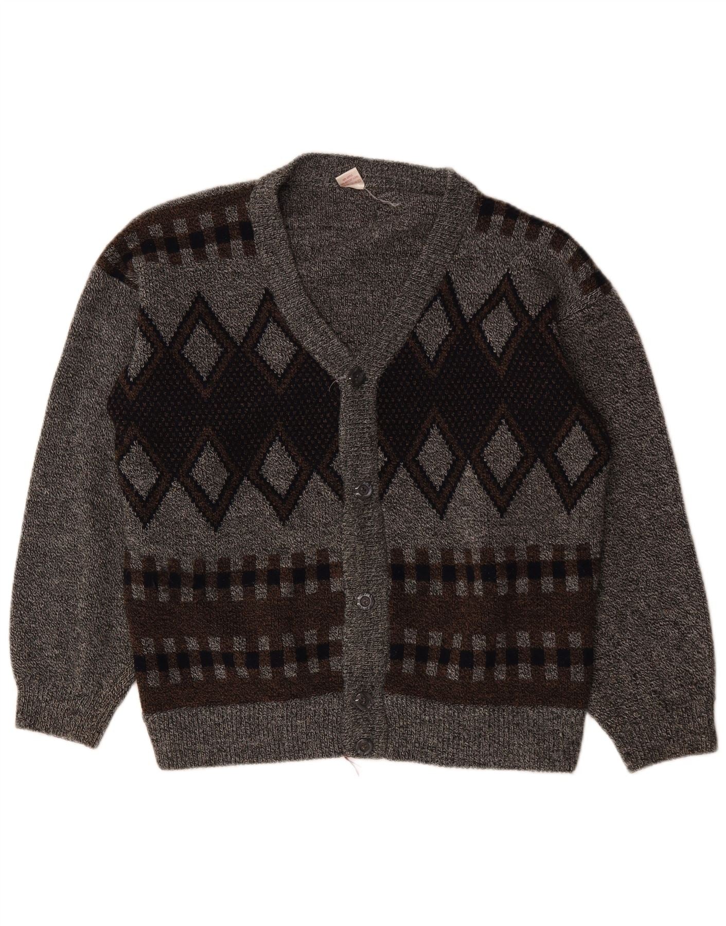 VINTAGE Herren Cardigan Pullover 2XL Grau Argyle/Diamant Acryl