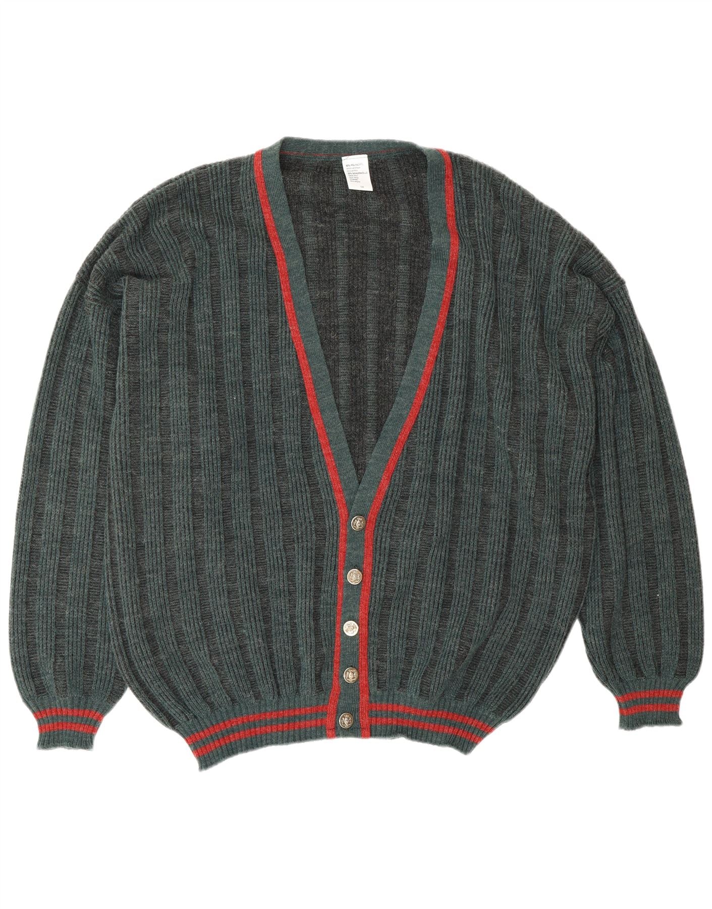 VINTAGE Herren Strickjacke IT 58 3XL Grün gestreift Polyacryl