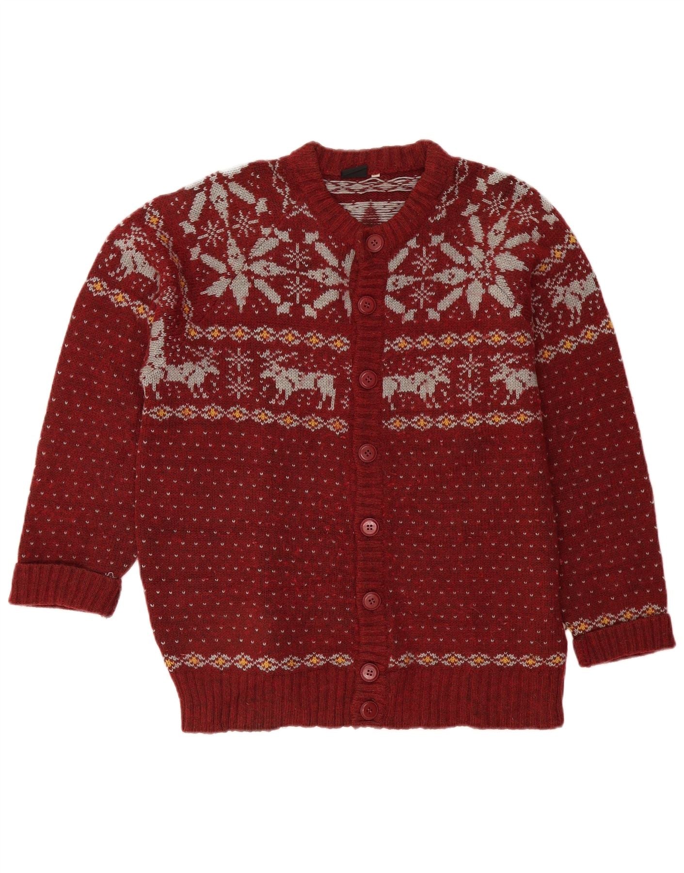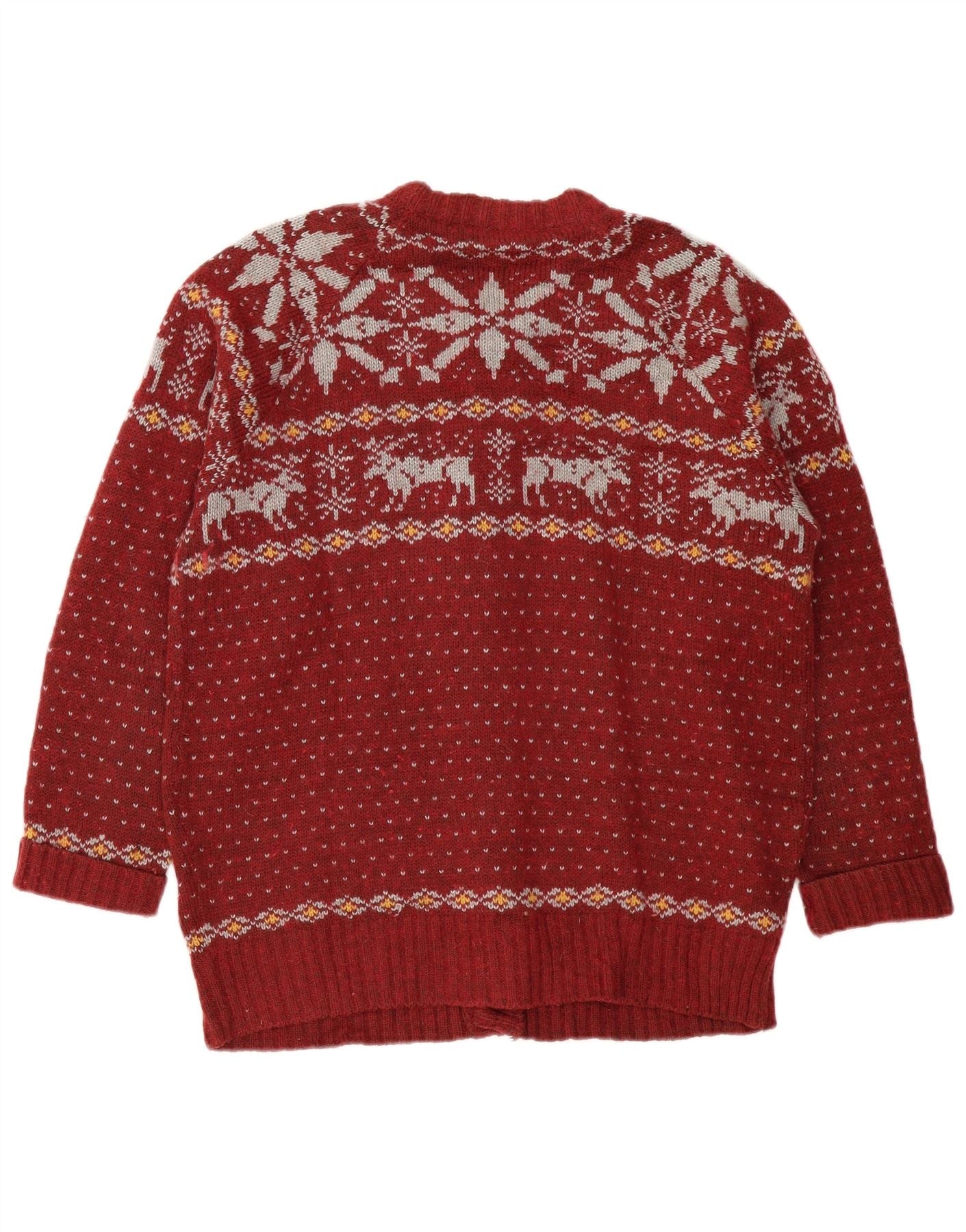 VINTAGE Herren Cardigan Pullover Große Burgunder Fair Isle Wolle