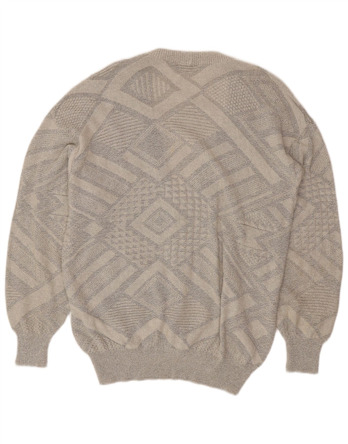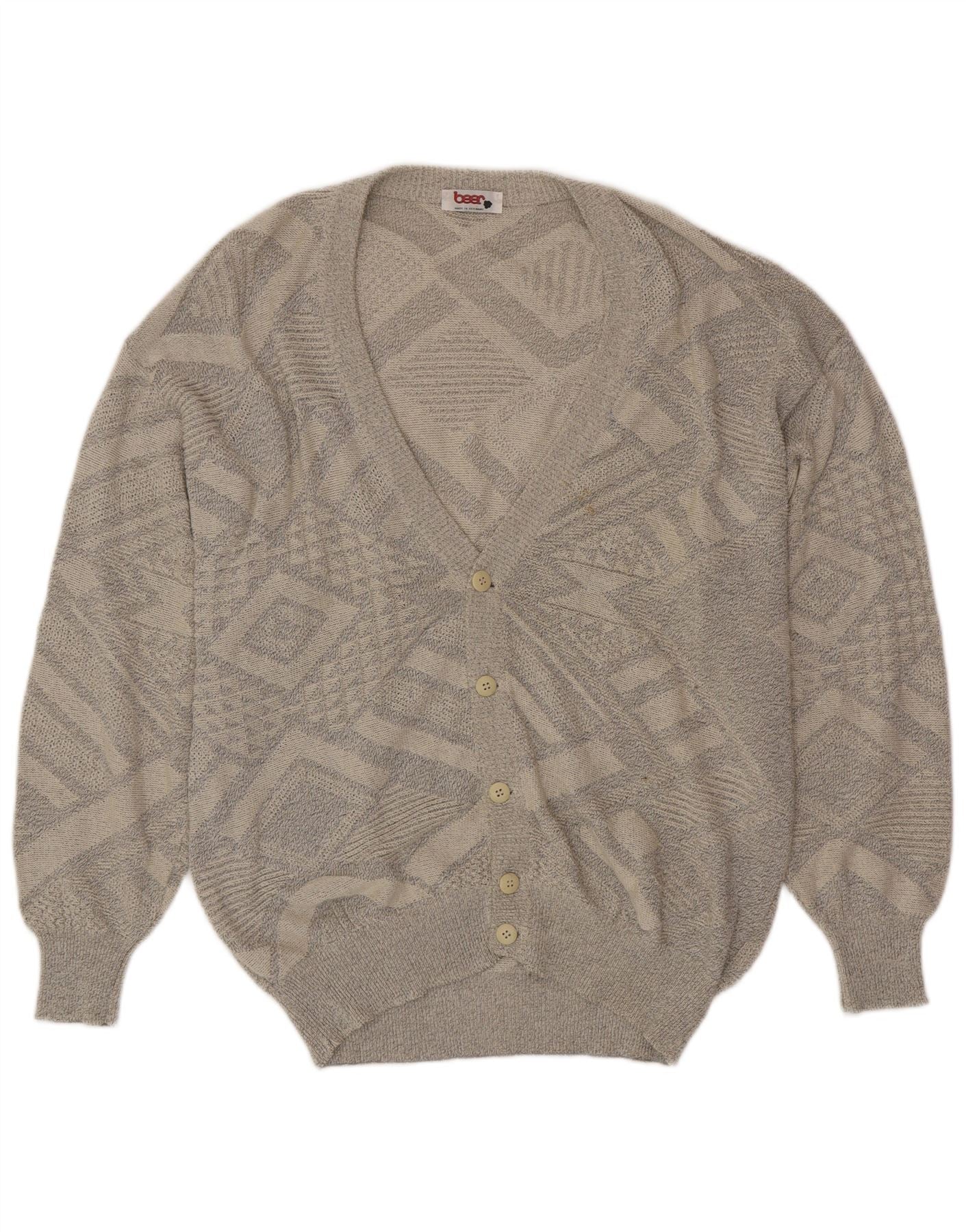 VINTAGE Herren Cardigan Pullover Große graue geometrische Baumwolle