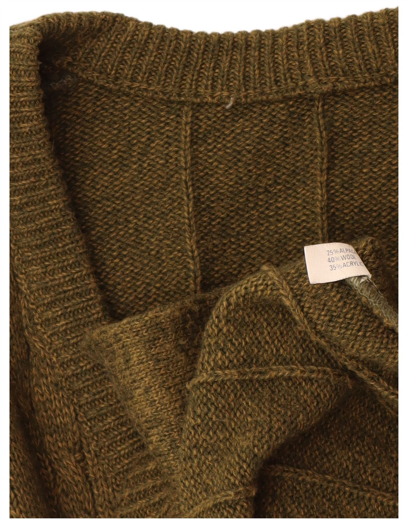 VINTAGE Herren-Cardigan-Pullover, groß, Khaki, Alpakawolle