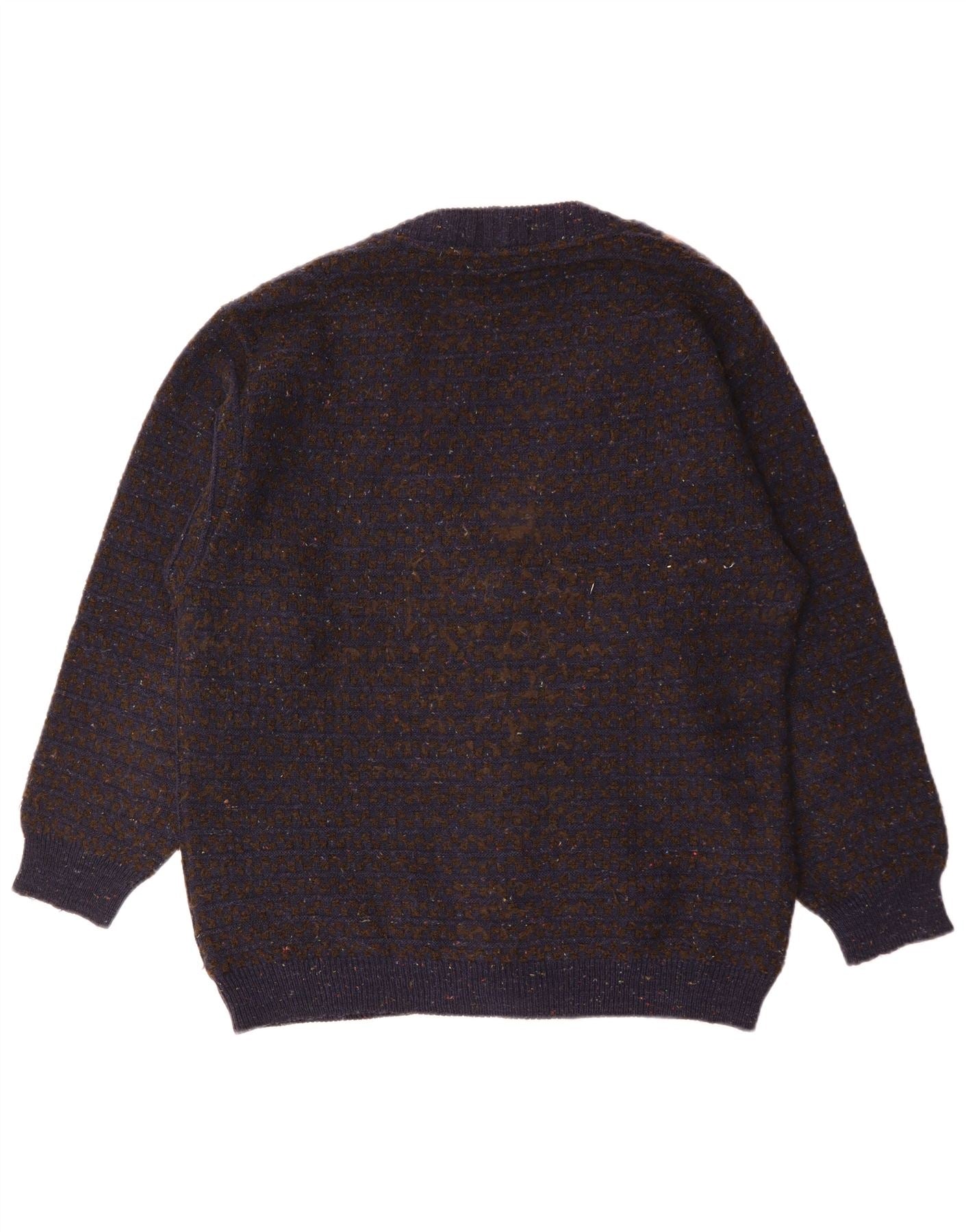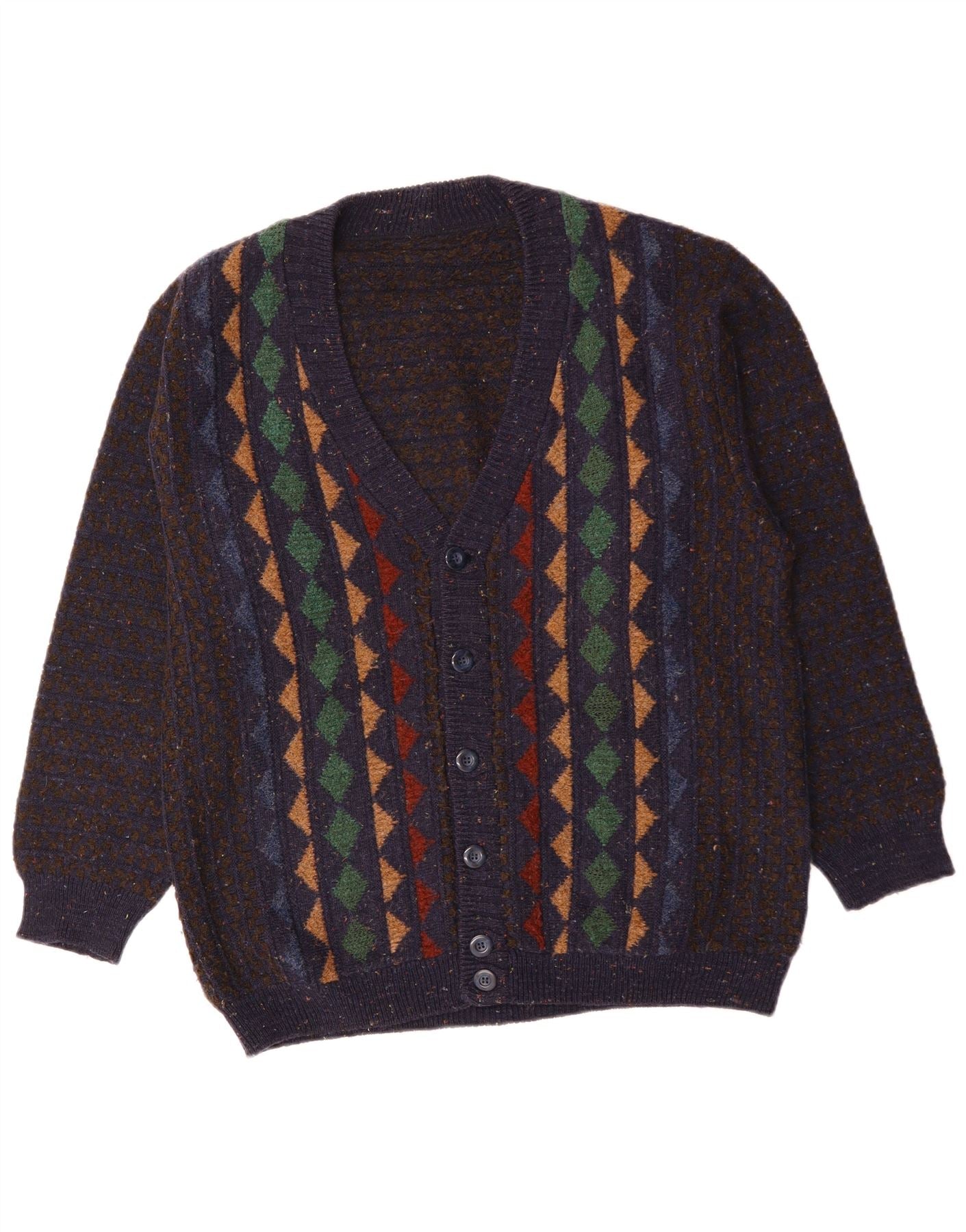 VINTAGE Herren-Strickjacke, groß, marineblau, Argyle/Diamant-Merinowolle
