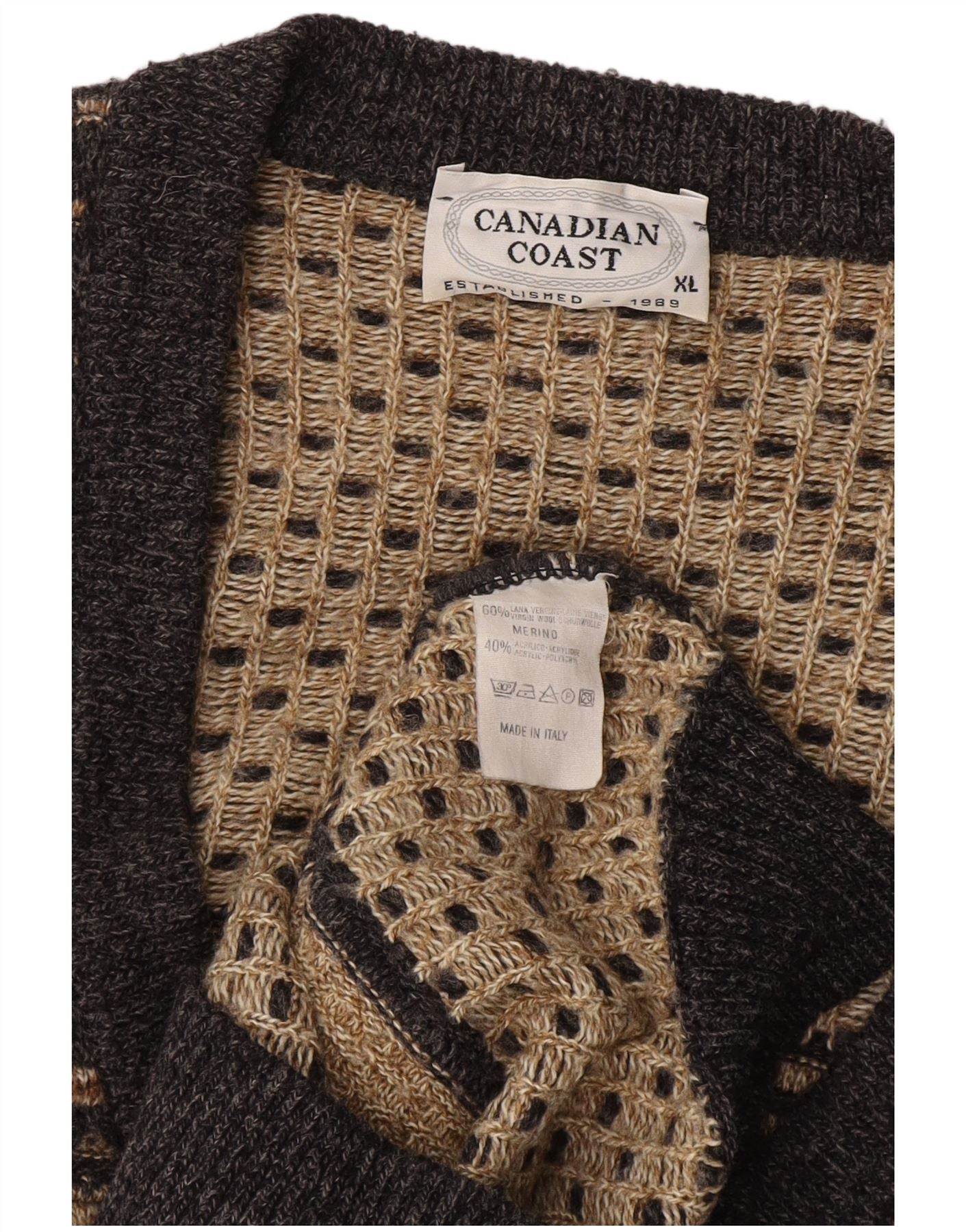 VINTAGE Herren Strickjacke XL Grau gestreifte Wolle