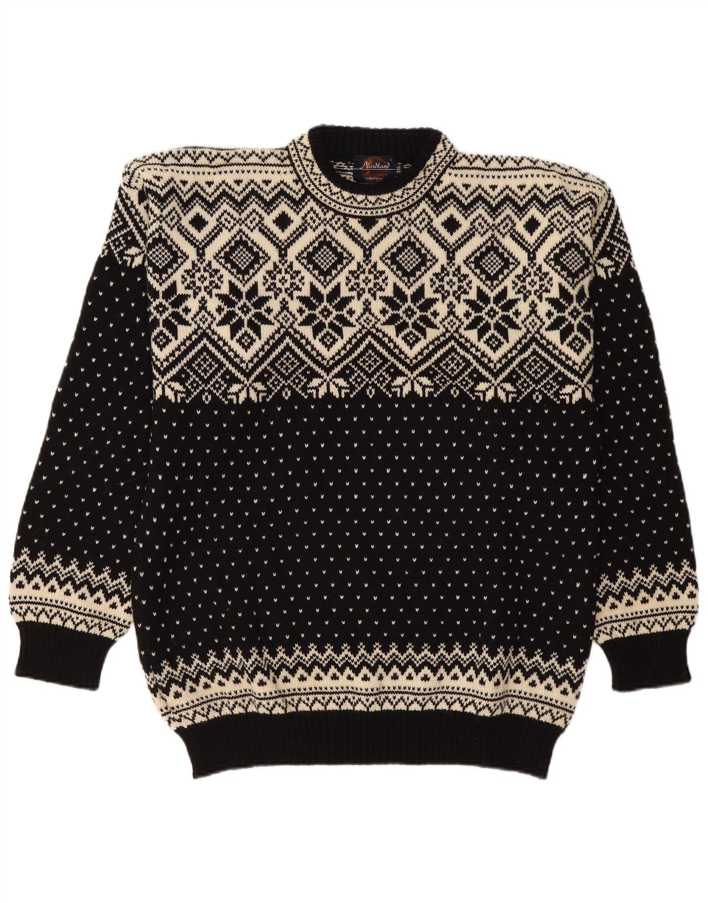 Vintage Herren Rundhalspullover Pullover 2XL Schwarz Fair Isle Schurwolle