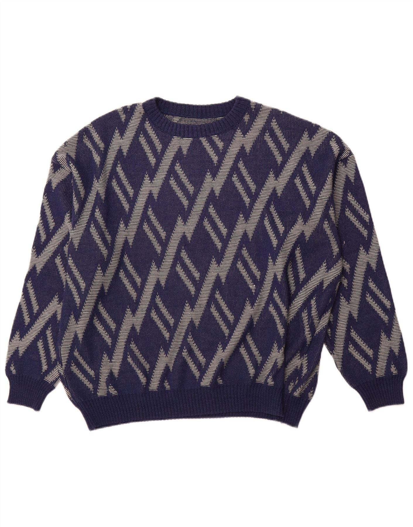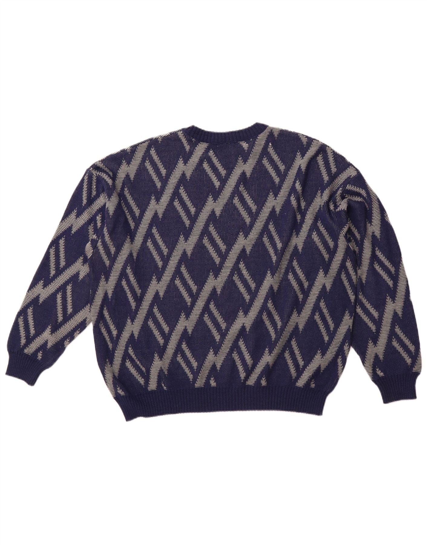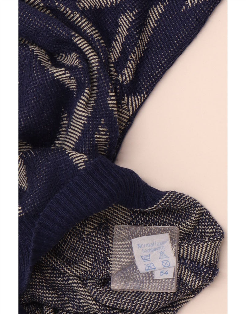 VINTAGE Herren Pullover mit Rundhalsausschnitt IT 54 XL Blau Geometrisch