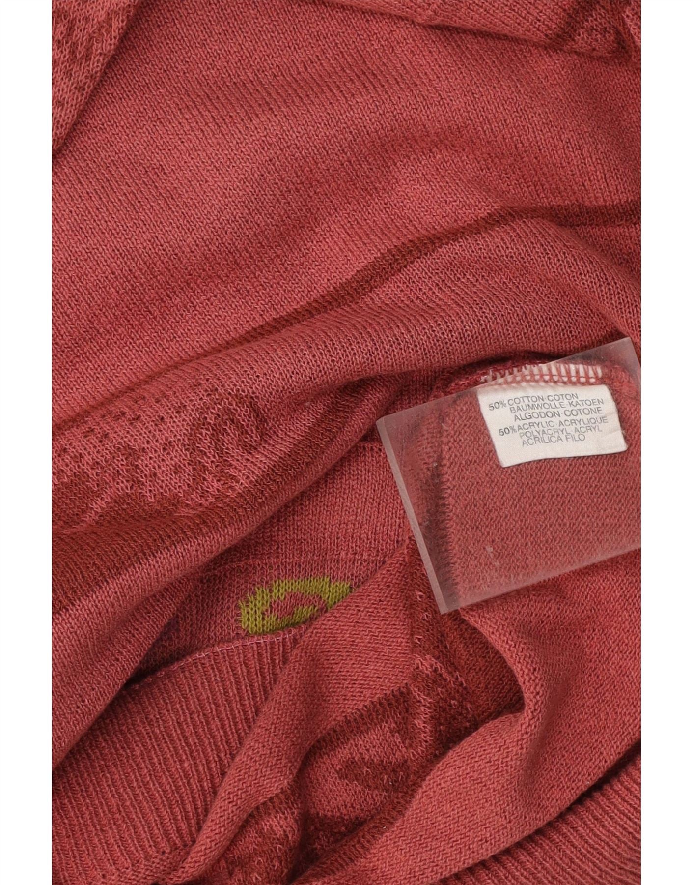 VINTAGE Herren-Pullover mit Rundhalsausschnitt, groß, burgunderrot, gestreift, Baumwolle