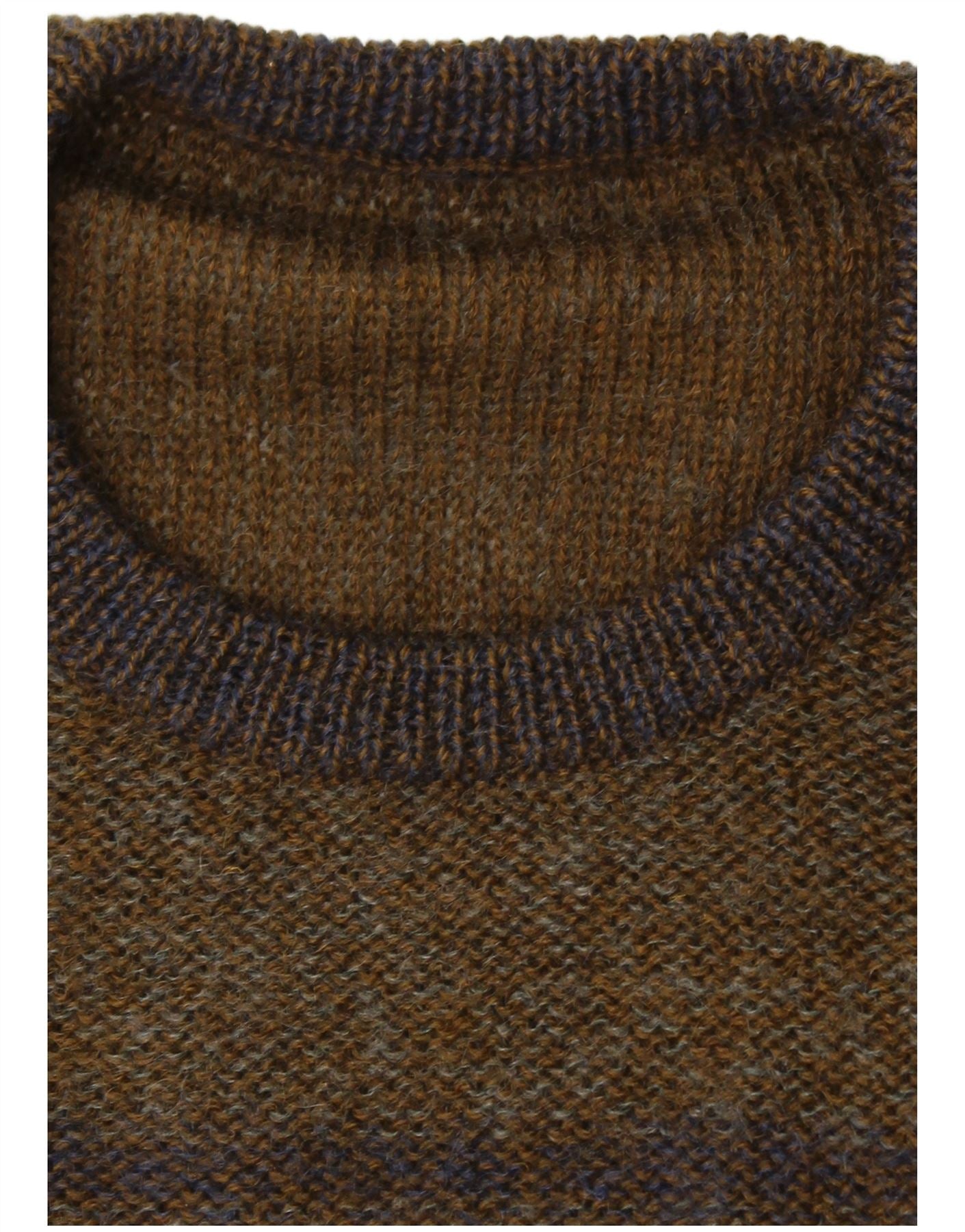 VINTAGE Mens Crew Neck Jumper Sweater Large Khaki Colourblock