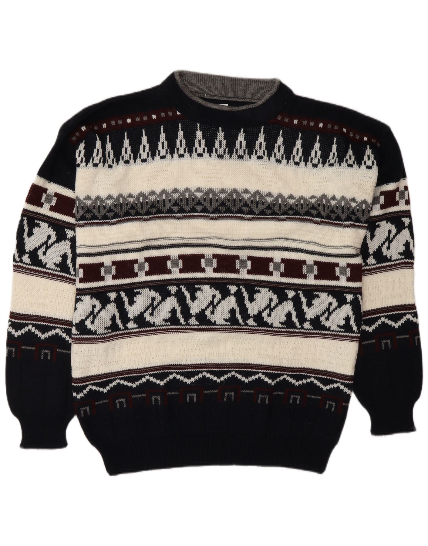 VINTAGE Herren-Pullover mit Rundhalsausschnitt, groß, mehrfarbig, Fair Isle