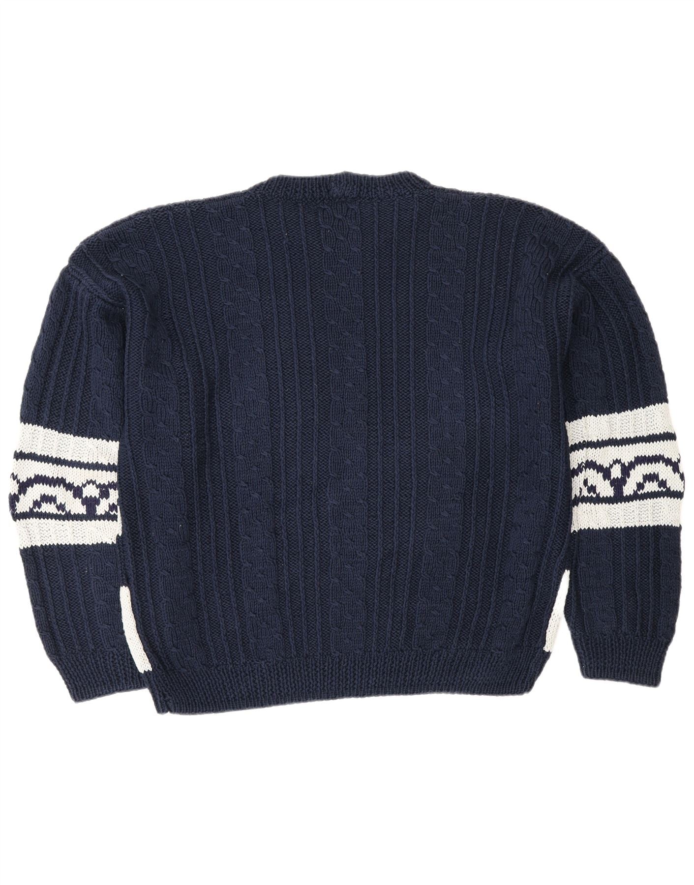 Vintage Herren Pullover mit Rundhalsausschnitt, groß, Marineblau, Fair Isle