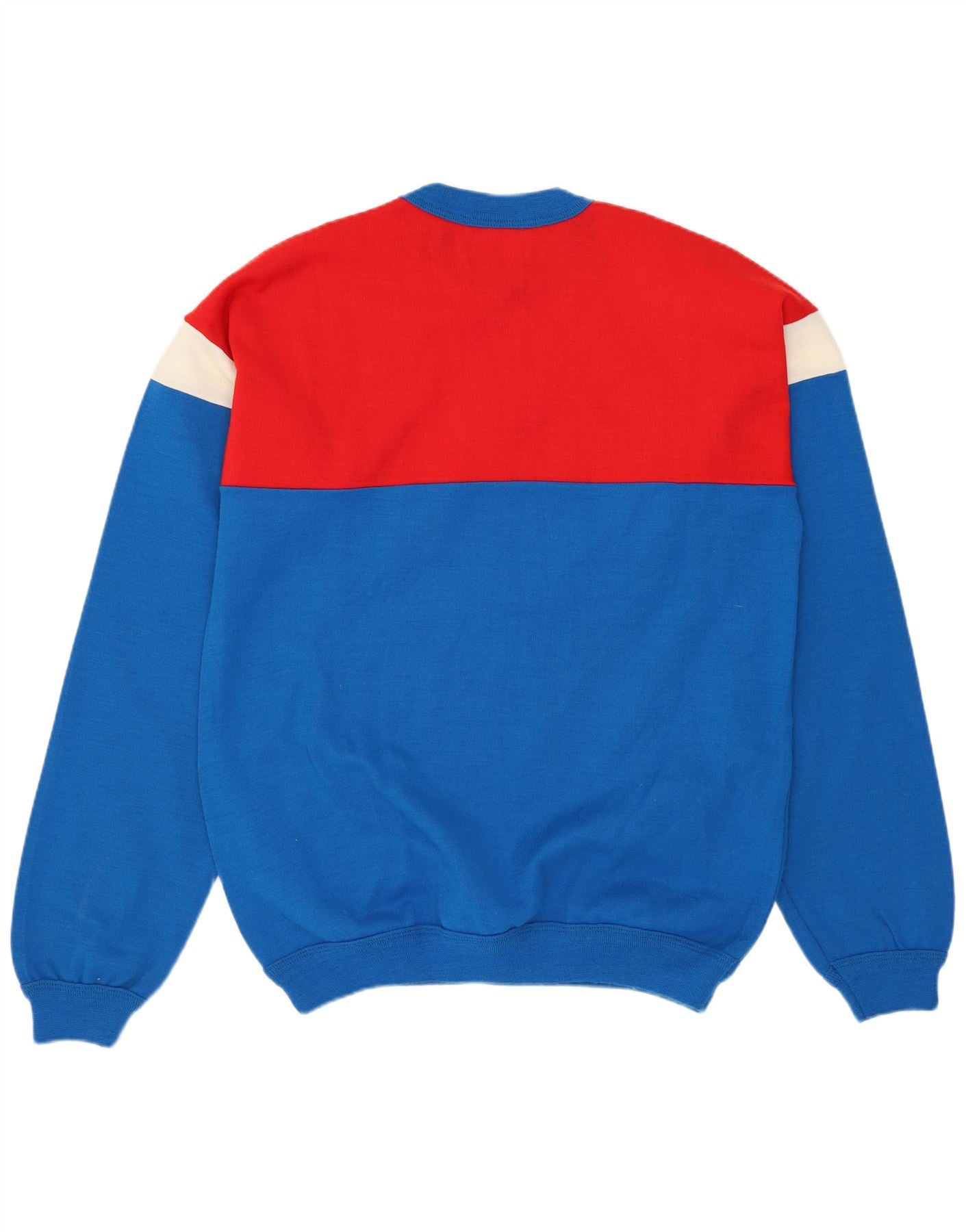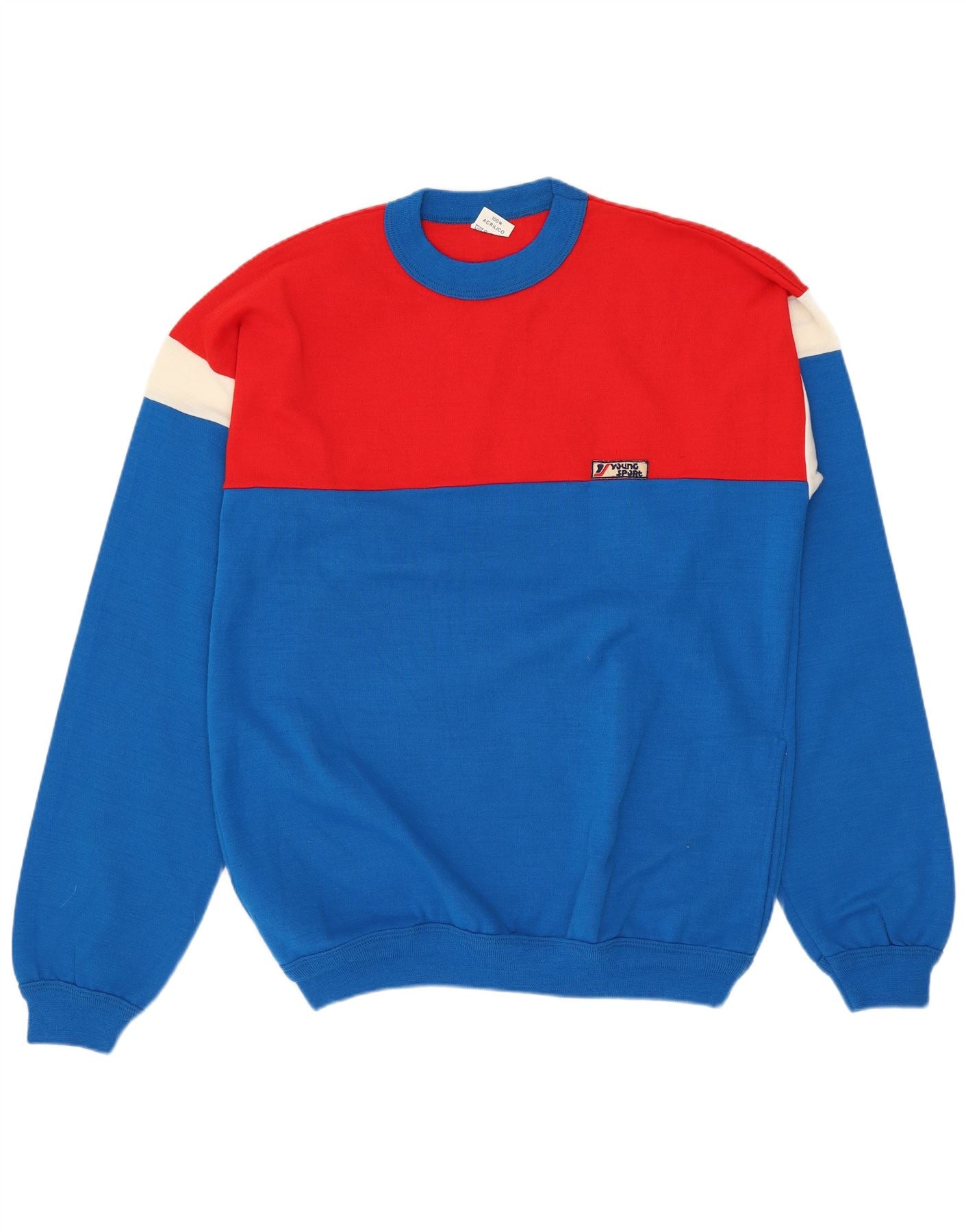VINTAGE Herren-Pullover mit Rundhalsausschnitt, Mittelblau, Farbblock-Acryl
