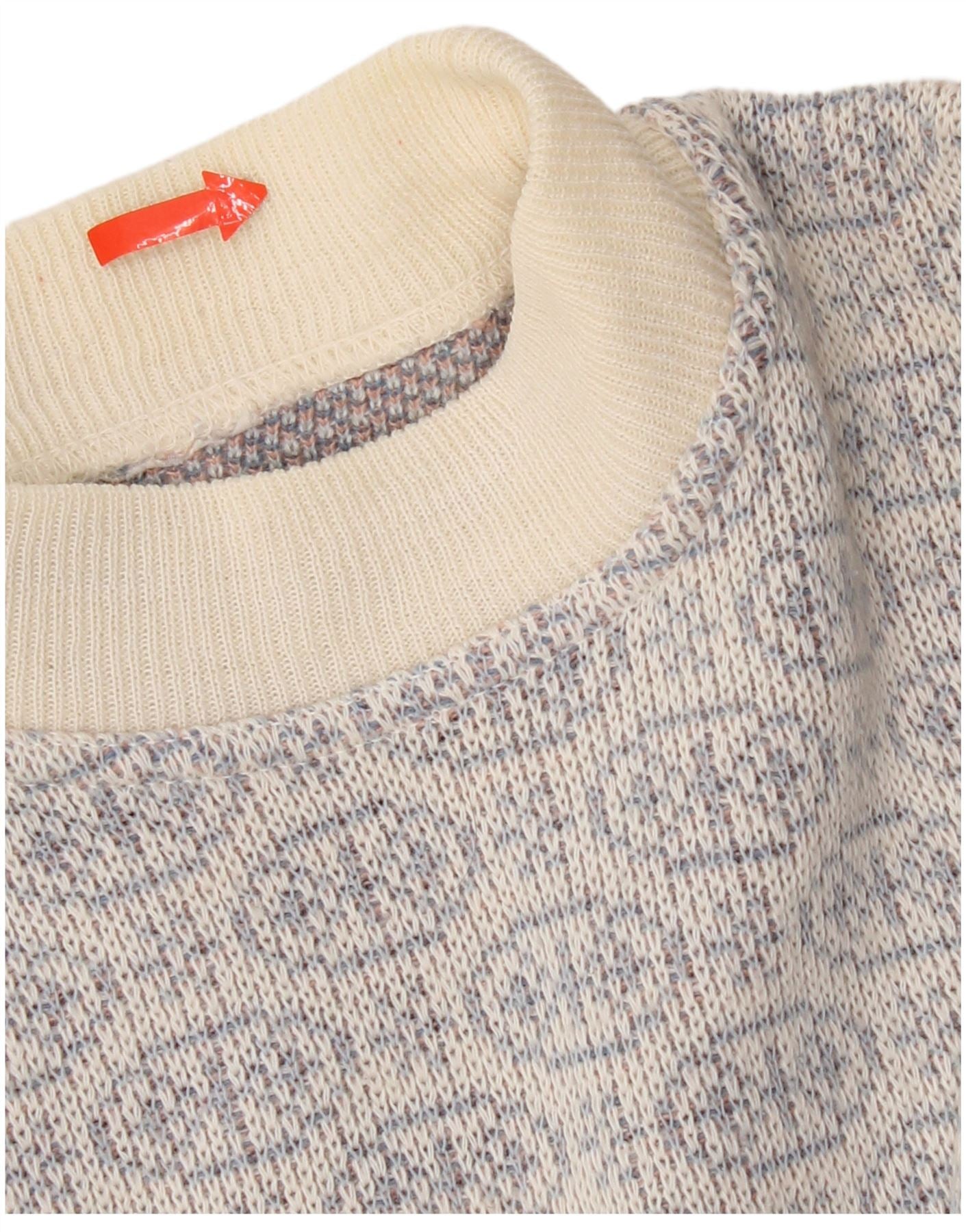 - KI-Beschreibung: Dieser Vintage-Pullover für Herren ist aus einem bequemen Strickstoff gefertigt. Es verfügt über eine cremefarbene Basis mit einem markanten geometrischen Muster auf der Brust und den Ärmeln. Der Rundhalsausschnitt und die langen Ärmel sorgen für eine klassische Silhouette. Sein Pullover-Stil sorgt für Tragekomfort. Die reguläre Passform sorgt für angenehmen Tragekomfort. Dieses Retro-Grafikdesign verleiht einen einzigartigen, künstlerischen Touch.