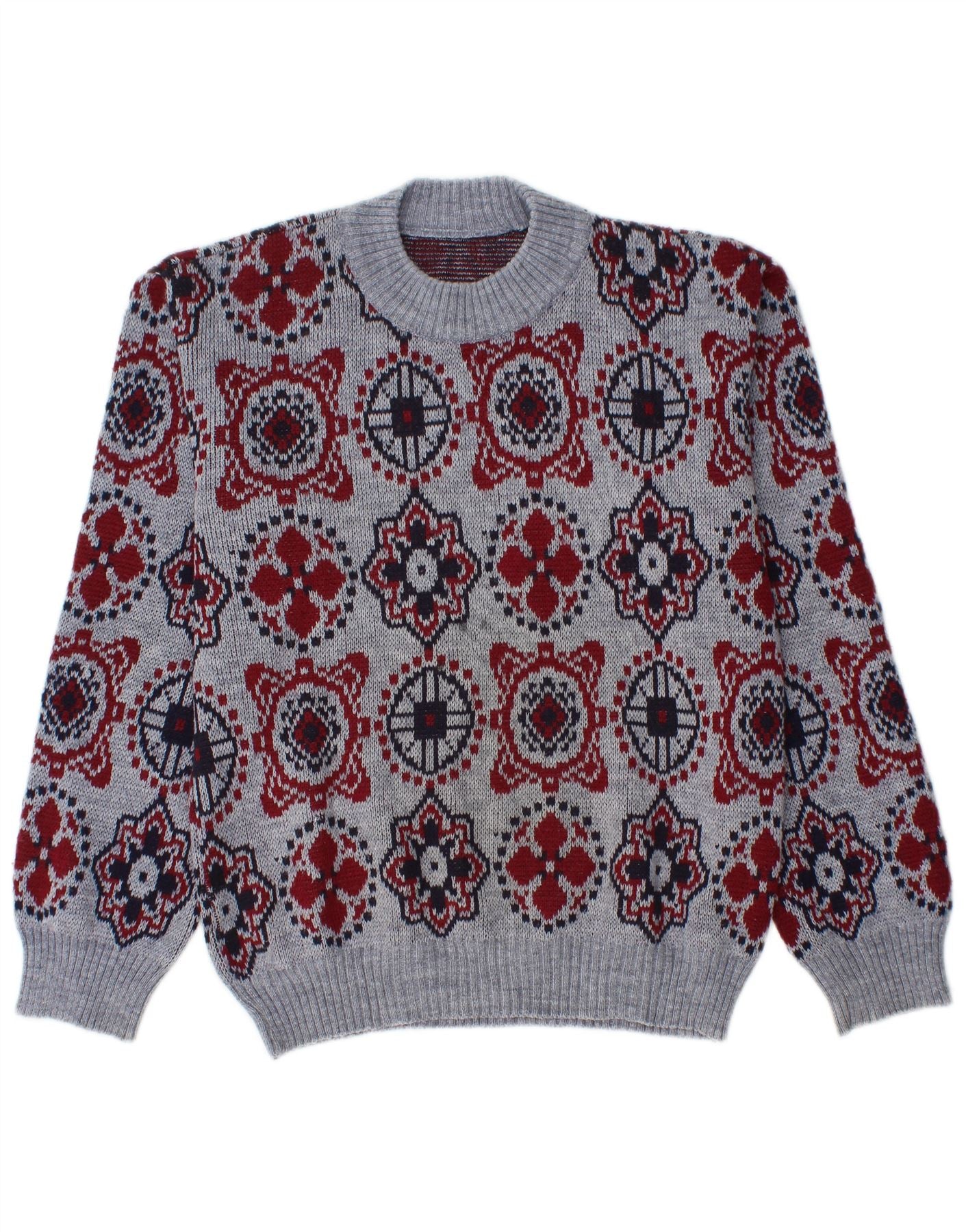 VINTAGE Herren Pullover mit Rundhalsausschnitt Mittelblau Fair Isle