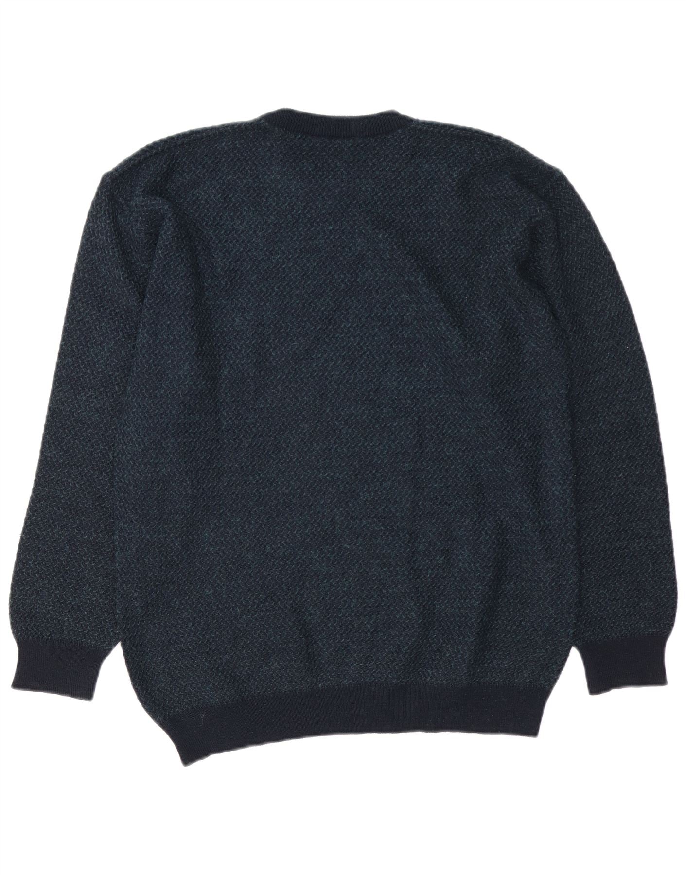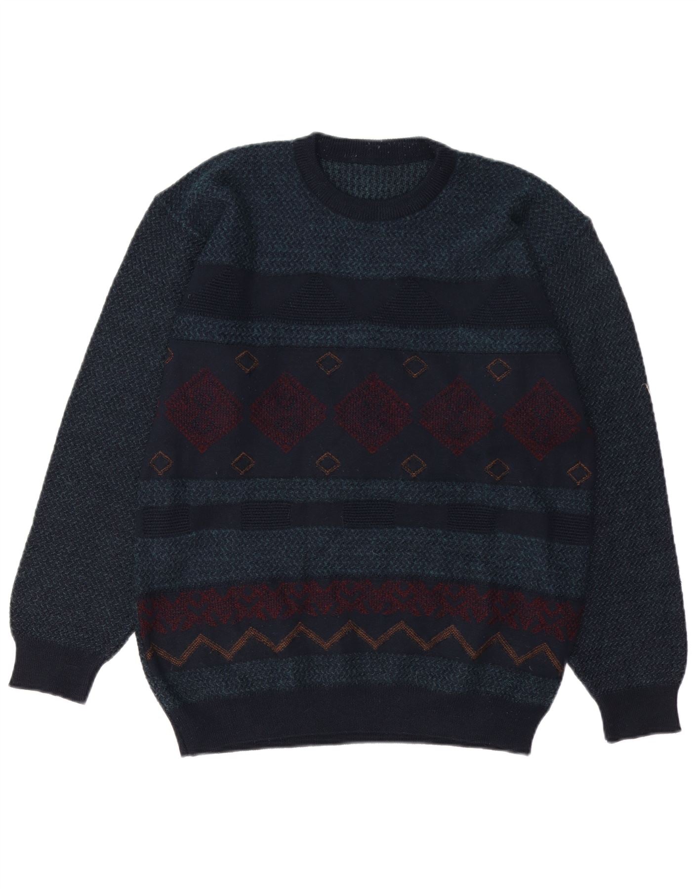VINTAGE Herren-Pullover mit Rundhalsausschnitt, mittelgroß, marineblau, geometrisch
