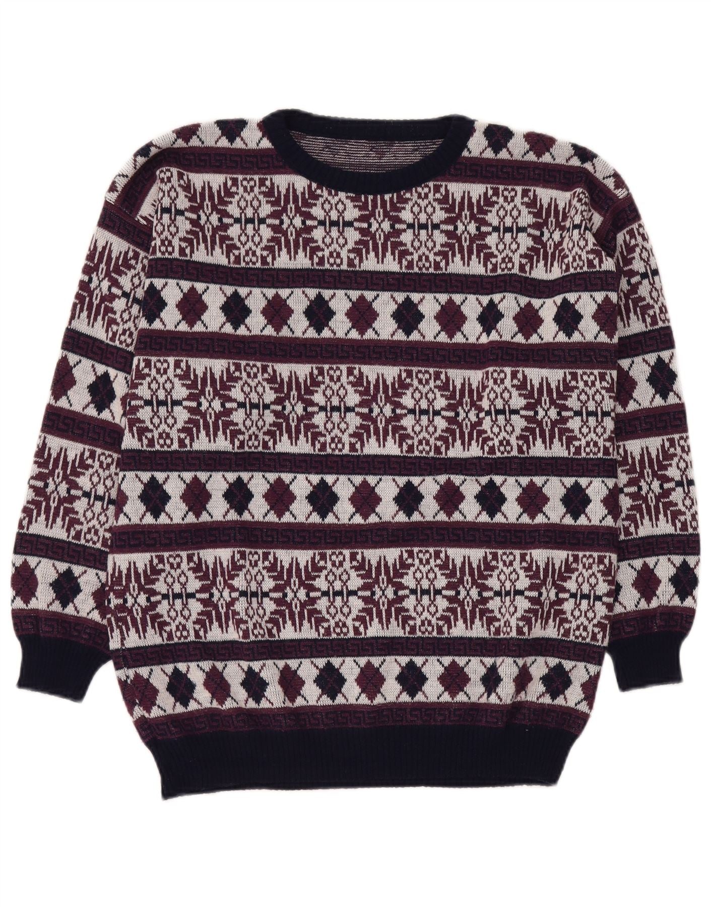 VINTAGE Herren-Pullover mit Rundhalsausschnitt, UK 40, mittleres Burgunderrot, Fair Isle