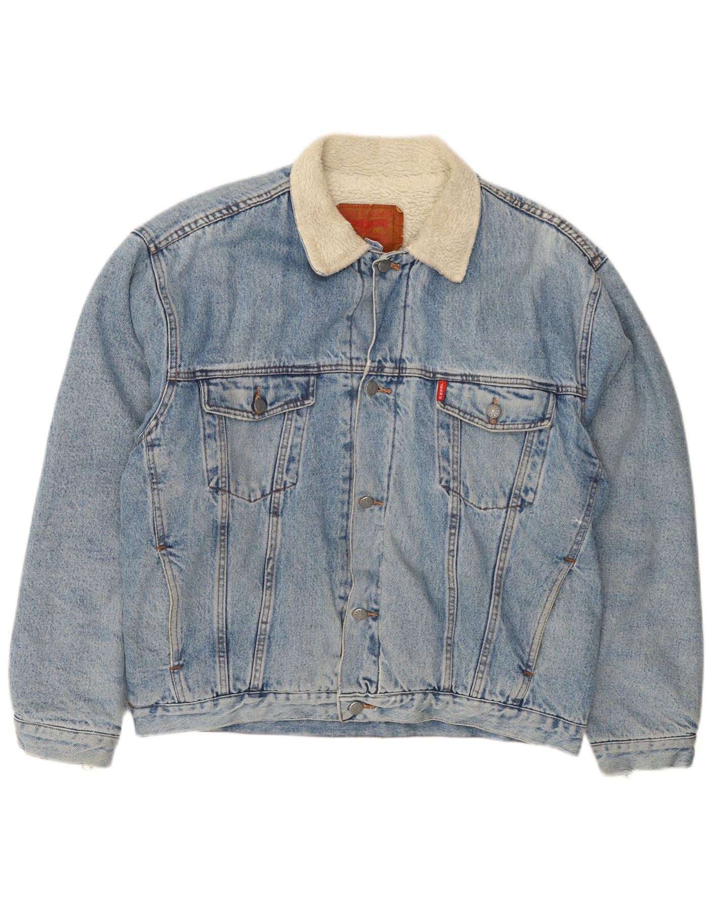 VINTAGE Herren Denim Sherpa Jacke UK 41 XL Blaue Baumwolle