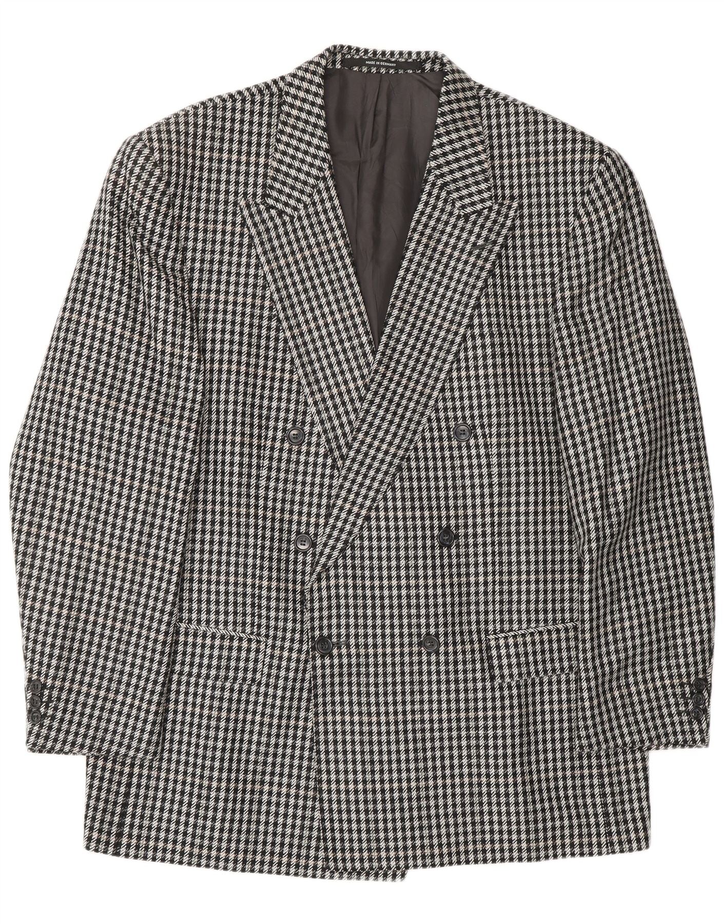 VINTAGE Herren Zweireiher Blazer Jacke EU 56 3XL Schwarz Fischgrätenmuster
