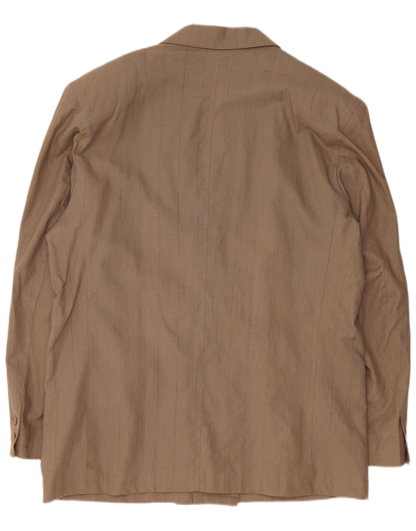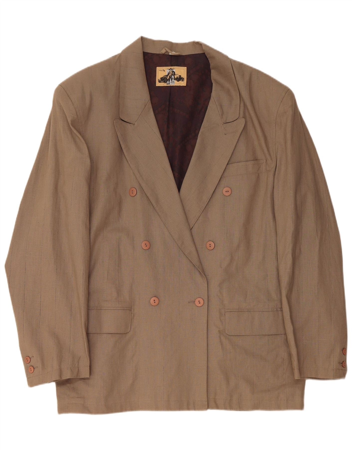 VINTAGE Herren Zweireihiger Blazer Jacke EU 56 3XL Braunes Leinen