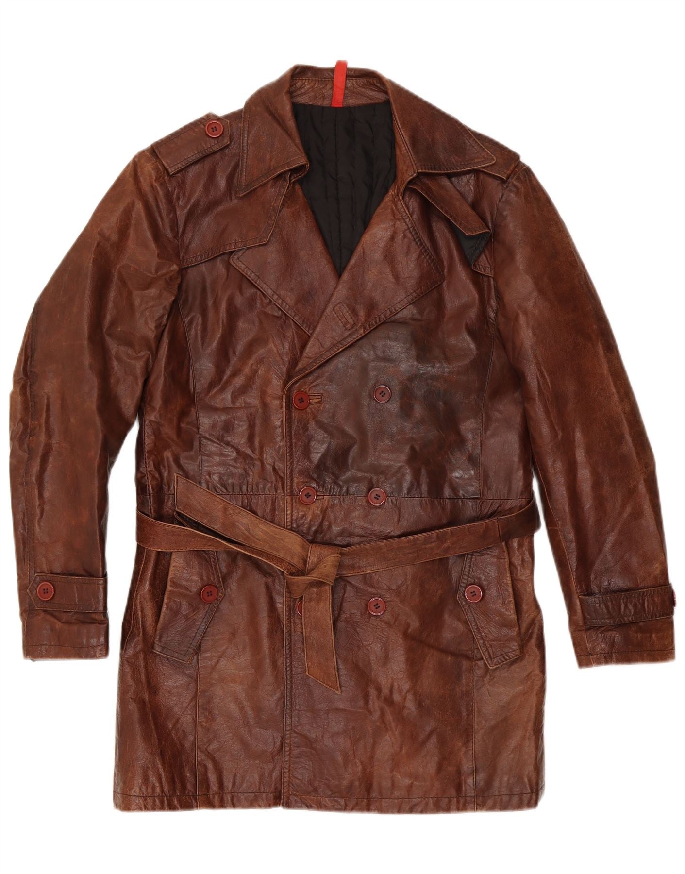 VINTAGE Herren Zweireihiger Militärledermantel IT 50 Large Braun