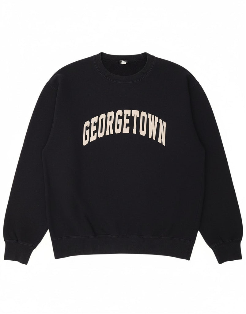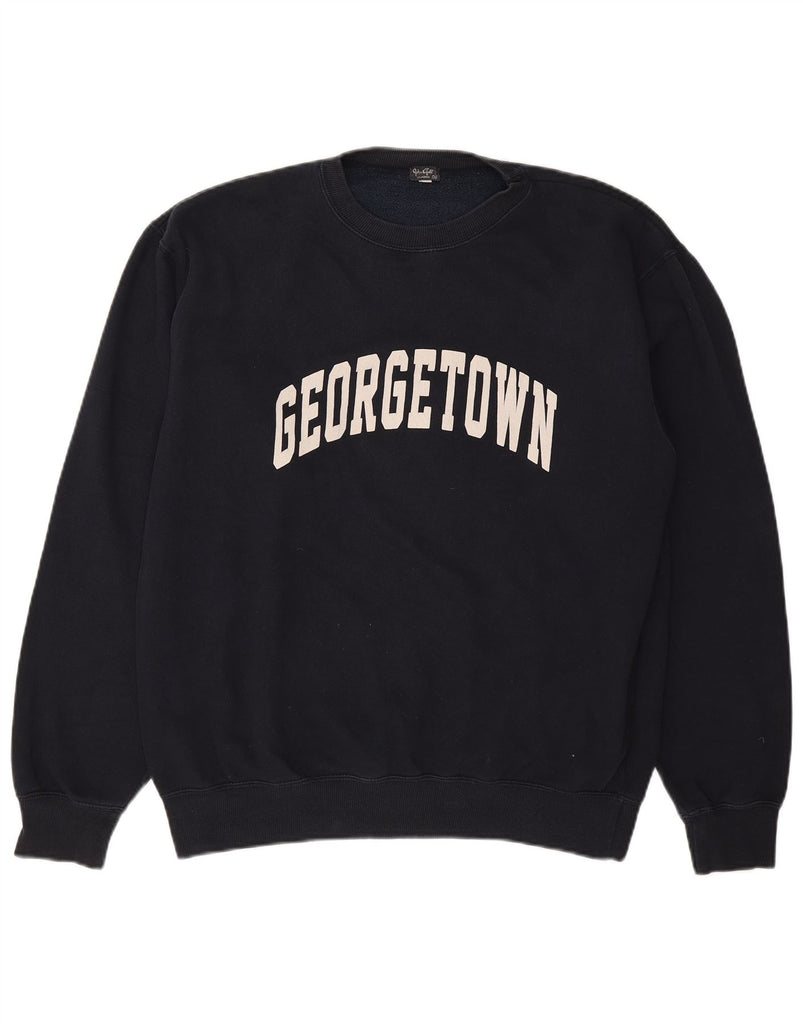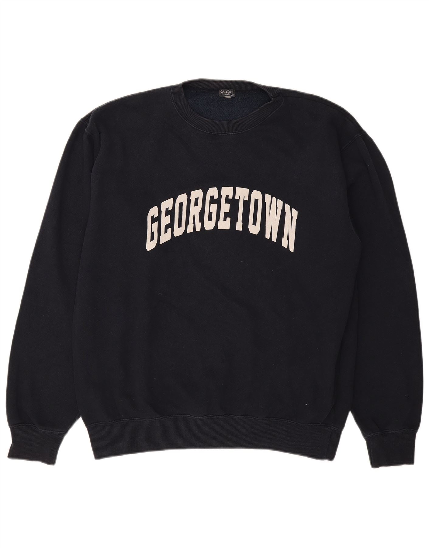 VINTAGE Mens Georgetown Graphic Sweatshirt Jumper Medium Navy Blue Cotton